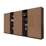 Распашной шкаф 1 BMS олицетворяет современный подход к организации пространства. Встроенная модель выгодно использует особенности планировки и отличается особенной вместительностью. Конструктивно композиция объединяет два распашных платяных шкафа, шкаф с выдвижными ящиками в основании и стеллажи с открытыми полками для книг, предметов декора и необходимых в зоне быстрого доступа мелочей. Глянцевые фасады шоколадного оттенка просты в уходе и устойчивы к механическим повреждениям и выгоранию. Купить Распашной шкаф 1 BMS приглашаем в наш интернет-магазин.