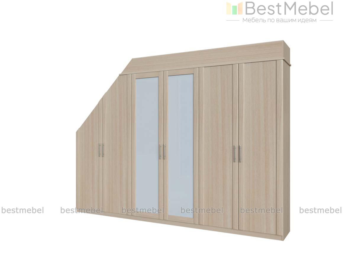 Распашной шкаф 869 BMS дополнит удобной системой хранения помещения нестандартной планировки. Практичная встроенная конструкция со скошенным углом оптимальна для размещения в мансардах и позволяет эффективно использовать доступное пространство. Крупногабаритная композиция включает в себя три распашных двухдверных отделения, в оформлении фасадов сочетаются светлые древесные тона и стекло. Купить Распашной шкаф 869 BMS с учетом необходимых параметров вы сможете в нашем интернет-магазине.