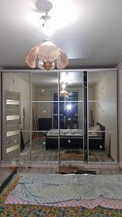 Большой встроенный удобный шкаф с зеркалами, бесшумный при открывании, делает пространство визуально больше