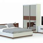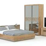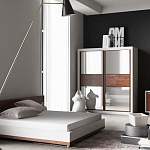Спальня Алиса № 1 BMS – выбор поклонников минимализма и ультрамодных дизайнов. Визуально легкий и функциональный комплект выполнен в сочетании белого и поверхностей под массив дерева. Эффектная композиция включает в себя кровать с просторным спальным местом без спинки в изножье и спинкой изголовья, составляющей единое целое с задними панелями тумб, комбинированную широкую тумбу с нишей и двухдверный шкаф-купе для одежды с зеркальным фасадом. Купить спальню Алиса № 1 BMS вы сможете в нашем интернет-магазине по выгодной цене.