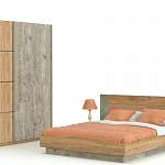 С этим стильным комплектом ваша спальня приобретет современный вид, а отдых станет максимально комфортным. Корпус и фасады модели выполнены в модном сочетании белого и светлого цвета под массив дуба с применением отделки из пластика. Оригинальные тумбочки на высоких ножках с легкой отсылкой в ретро могут выполнять функции прикроватного столика, а светодиодное освещение на спинке кровати сделает вечера особенно уютными. Удобное хранение вещам обеспечит вместительный шкаф-купе с зеркалом.