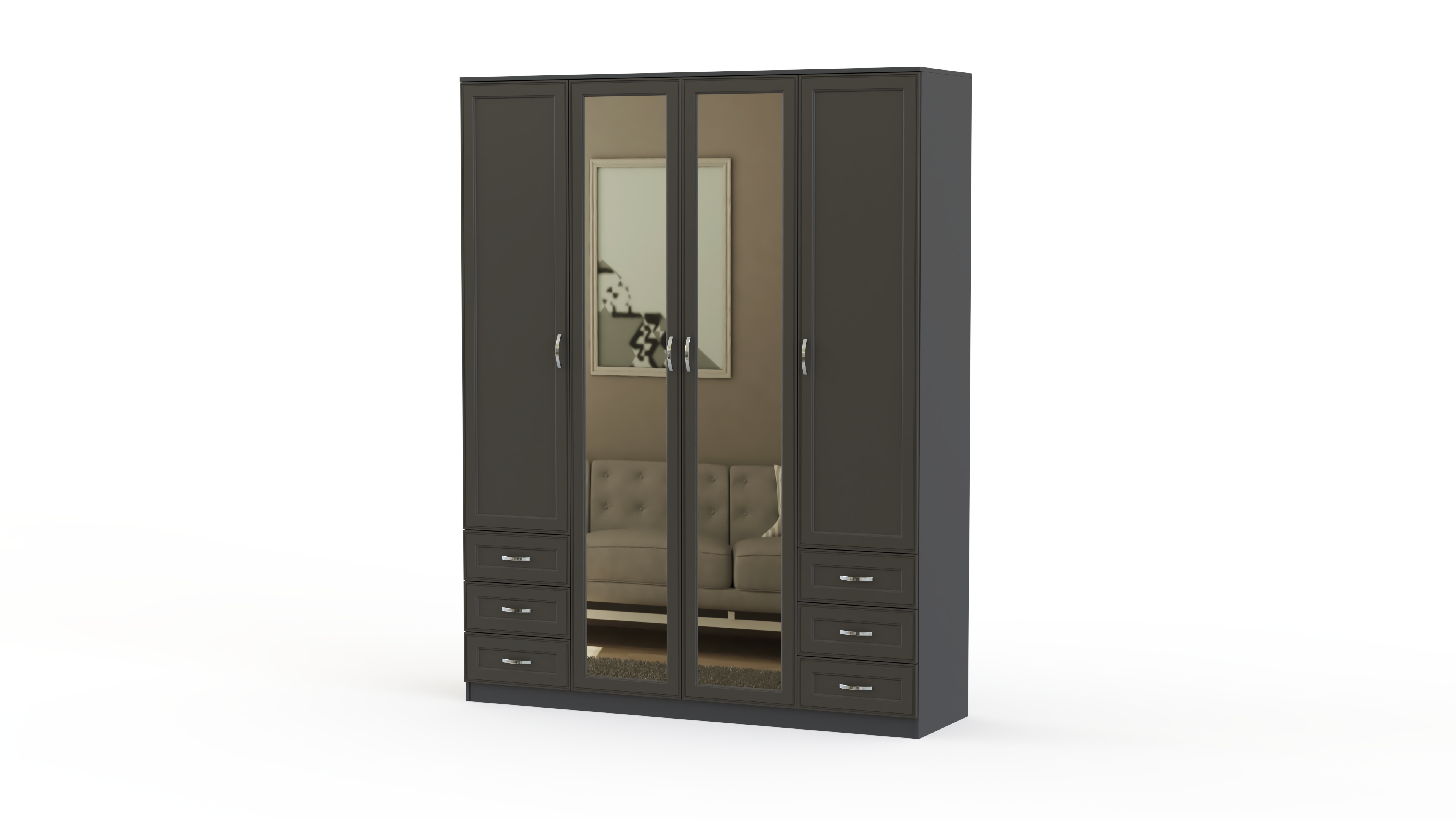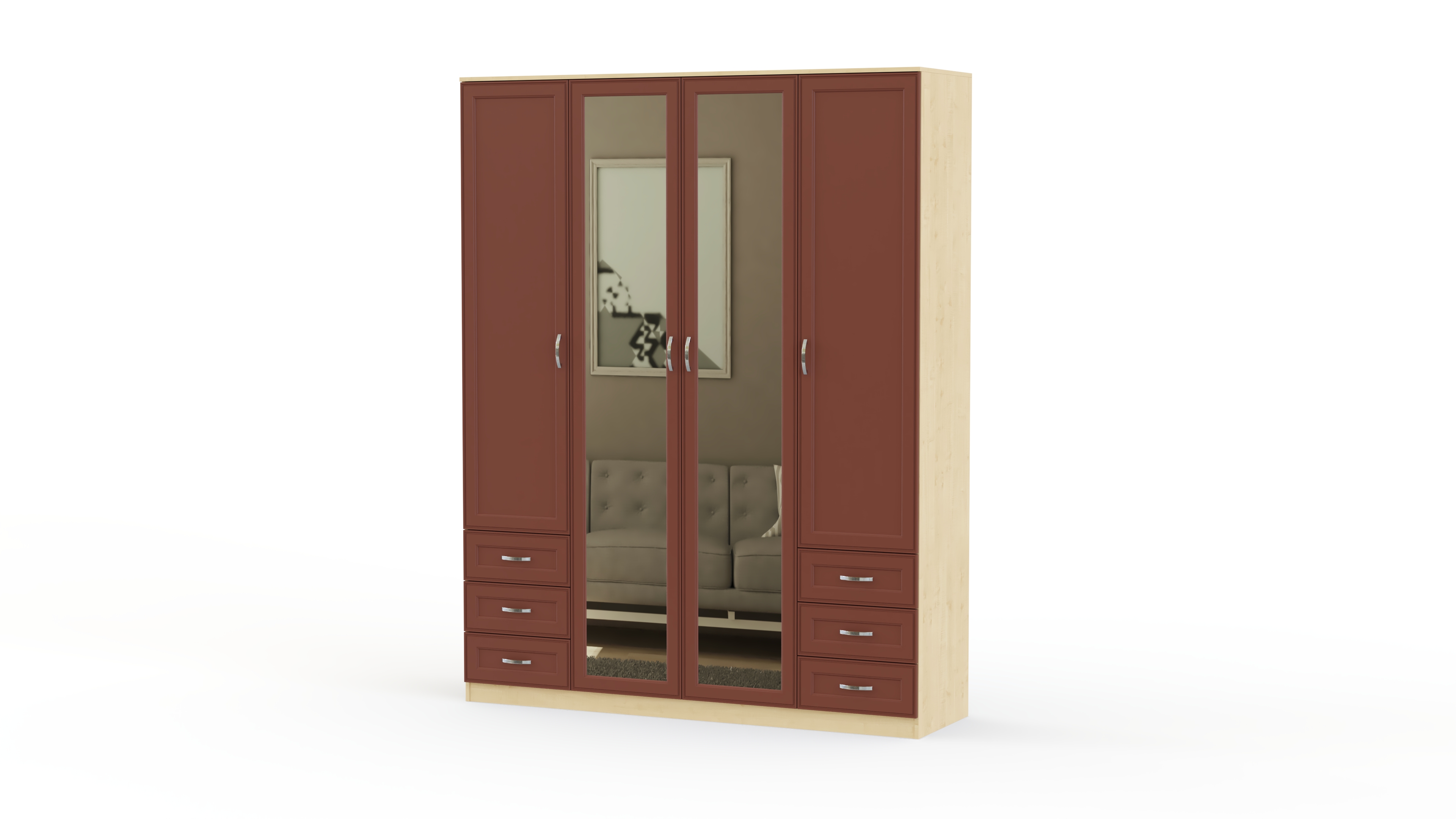 Шкаф 1600х2100х530мм, компоновка белье-платье-белье,