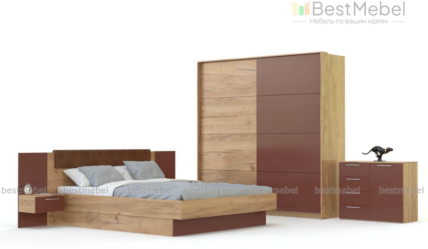 Спальня Луна 2.5 BMS имеет стильный и презентабельный вид. Благородством веет от правильных пропорций, четких линий, качественной фурнитуры. Богато выглядит мебель, благодаря натуральному цвету дерева с ярко выраженной текстурой, который красиво подчеркивается глубоким темным оттенком, выбранным дизайнерами для окрашивания отдельных элементов. Комплект включает в себя двуспальную кровать с высокой спинкой, имеющей мягкую обивку, навесные прикроватные тумбочки, вместительный комод и внушительных размеров шкаф-купе с подсветкой. Купить роскошную спальню Луна 2.5 BMS недорого приглашаем в нашем магазине в удобном режиме онлайн, с бесплатной доставкой.