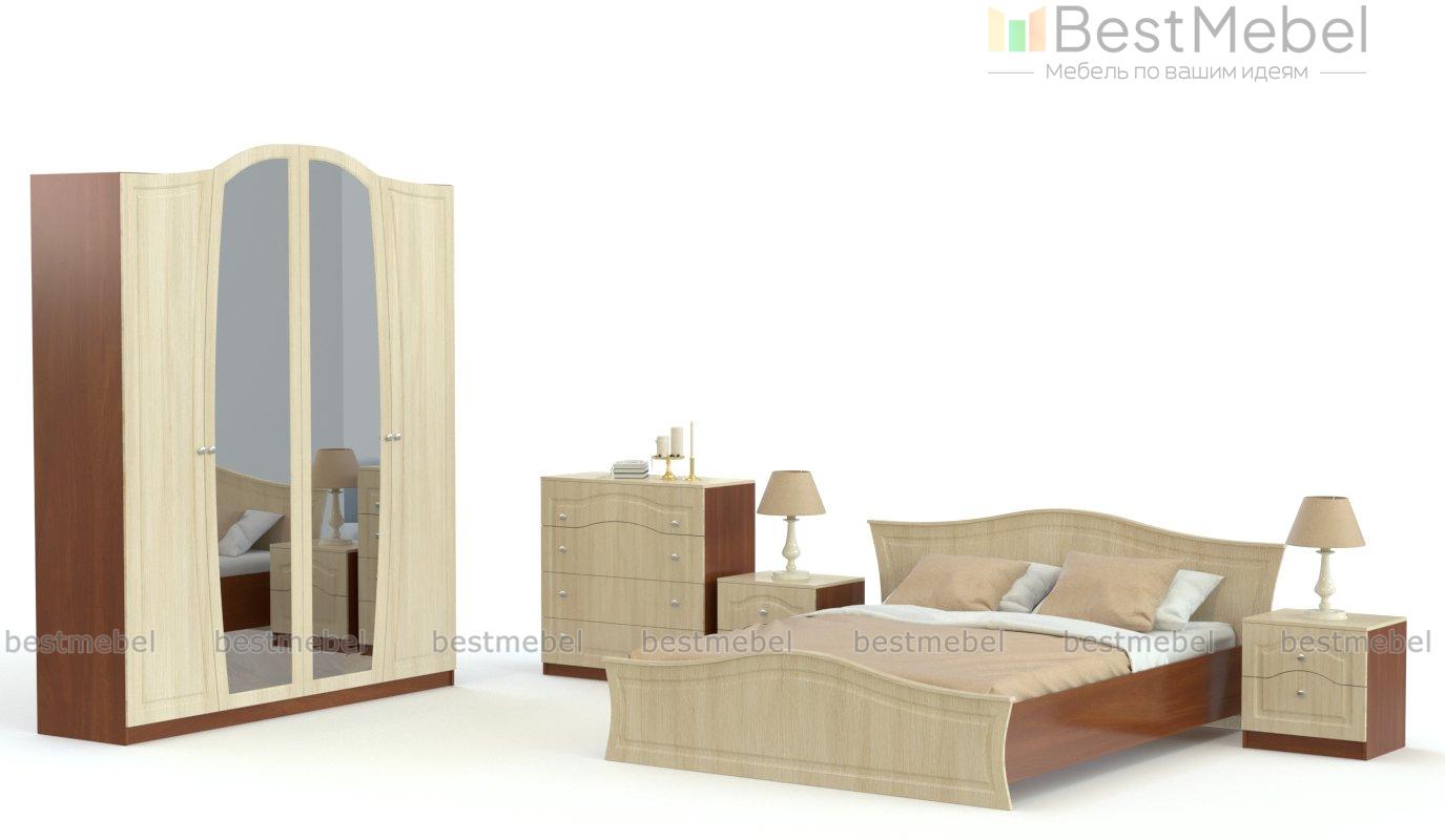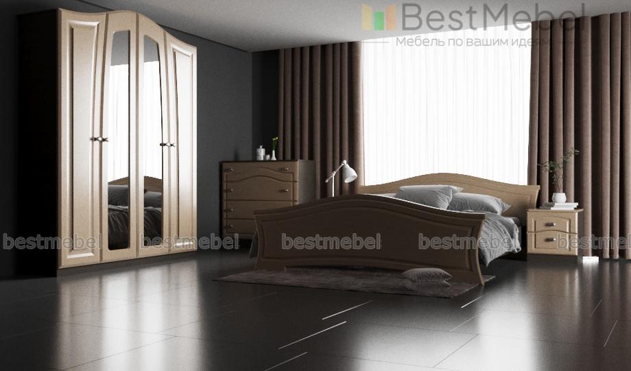 Изящная спальня Николь BMS производит благоприятное впечатление, придаст атмосфере помещения покой и уют. В наборе есть все необходимые для полноценного отдыха элементы. Шикарная кровать с нарядным высоким изголовьем, прикроватные тумбочки с маленькими выдвижными ящичками, комод, вместительный шкаф с огромным зеркалом. Фасады изделий украшает оригинальная фрезеровка, бархатистая на ощупь. Красивая фурнитура, насыщенные цвета натурального дерева придают мебели респектабельный вид. Благодаря наличию в нашем каталоге различных вариантов оформления и комплектации, вы сможете стать дизайнерами, оформив любимую спальню на свой вкус, исходя из финансовых возможностей. Сейчас на нашем сайте комплект Николь BMS продается по самой выгодной цене.