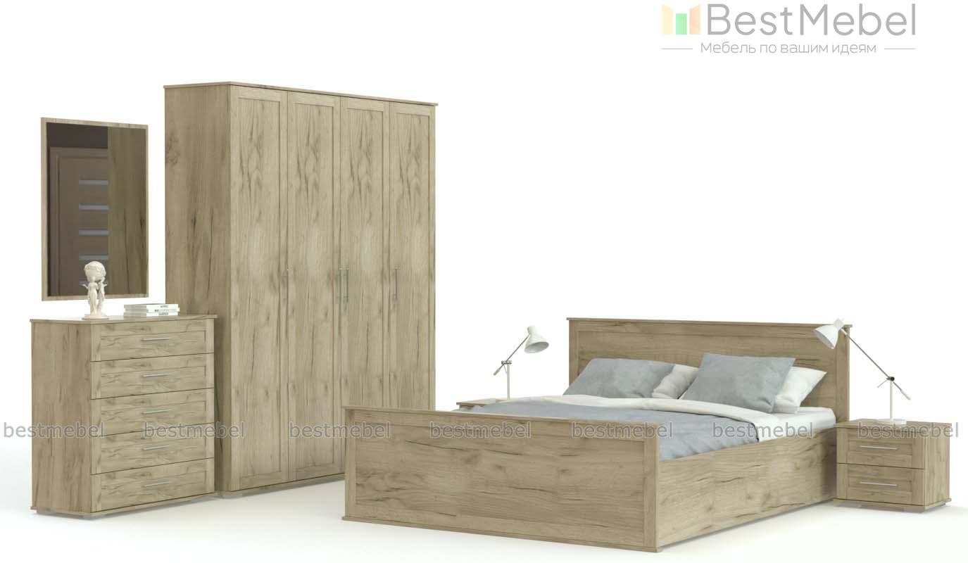 Спальню Палермо BMS отличают модный стиль, экологически чистые материалы, надежная фурнитура, повышающая комфорт использования. Она станет идеальным решением обстановки комнаты для любителей утонченности и красоты мебели, выполненной в классическом стиле. Все детали комплекта объединяет ровность и чистота линий, а кажущаяся простота компенсируется оригинальным выбором расцветки. Свежий природный оттенок осветленного дуба придает интерьеру солидность и роскошь. Благодаря широкой палитре оттенков, предлагаемых на нашем сайте, легко подобрать наиболее приемлемый вариант для создания уникальной обстановки в спальне. В состав великолепного гарнитура вошли двуспальная кровать, большой шкаф с четырьмя распашными дверями, две тумбочки, комод с пятью выдвигающимися ящиками, красивое настенное зеркало. Купите в нашем интернет-магазине спальню Палермо BMS по демократичной цене. Доставку мы сделаем совершенно бесплатно.