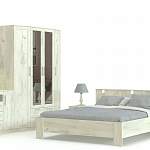 Стильная спальня Скандинавия BMS будет одинаково хорошо смотреться в современном помещении и комнате классического стиля. В ее оформлении удачно сочетаются простые формы, функциональность и интересный декор фасадов естественных древесных оттенков. В комплект входит состоящий из центрального с зеркалами и двух боковых скошенных элементов вместительный шкаф, удобный комод с навесным зеркалом, двуспальная кровать и две тумбы. Особенно выгодной покупка этого гарнитура будет в нашем интернет – магазине.