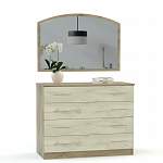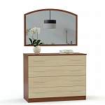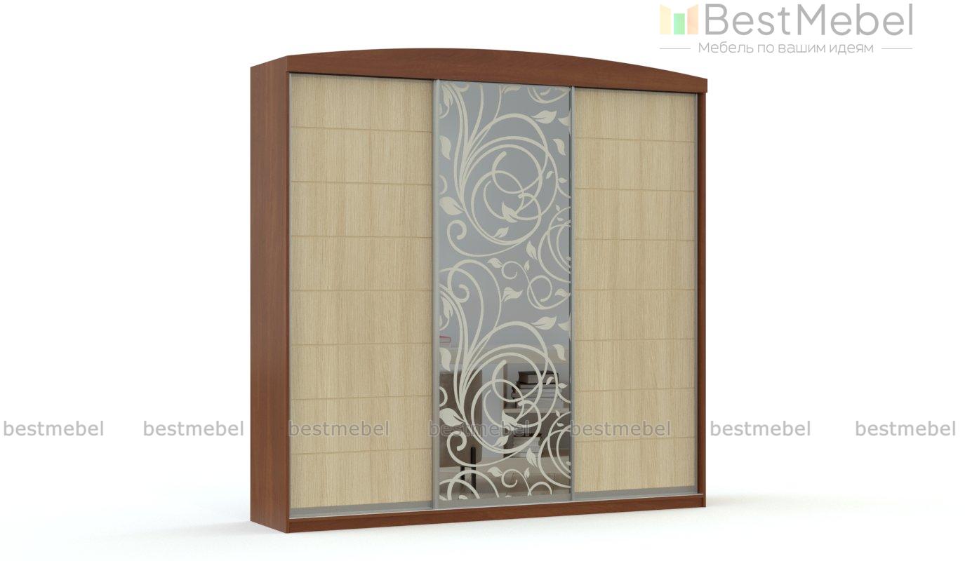 Спальня София 13 BMS поможет создать по-настоящему комфортный интерьер, в котором гармонично сочетаются уют и функциональность. Модульная композиция объединила кровать с мягкой обивкой изголовья и выкатными ящиками в основании, прикроватные тумбы, бельевой комод, фигурное навесное панно с зеркалом и трехдверный платяной шкаф-купе, центральная зеркальная створка которого украшена пескоструйным рисунком. Все предметы выполнены в контрастных, теплых древесных тонах. Купить спальню София 13 BMS приглашаем в наш интернет-магазин по отличной цене.