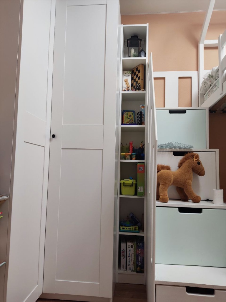 Мне нужен был супер узкий стеллаж, и мне его сделали по моим размерам. Все отверстия сделаны ровно там, где надо, вся фурнитура в комплекте. В общем, я довольна!