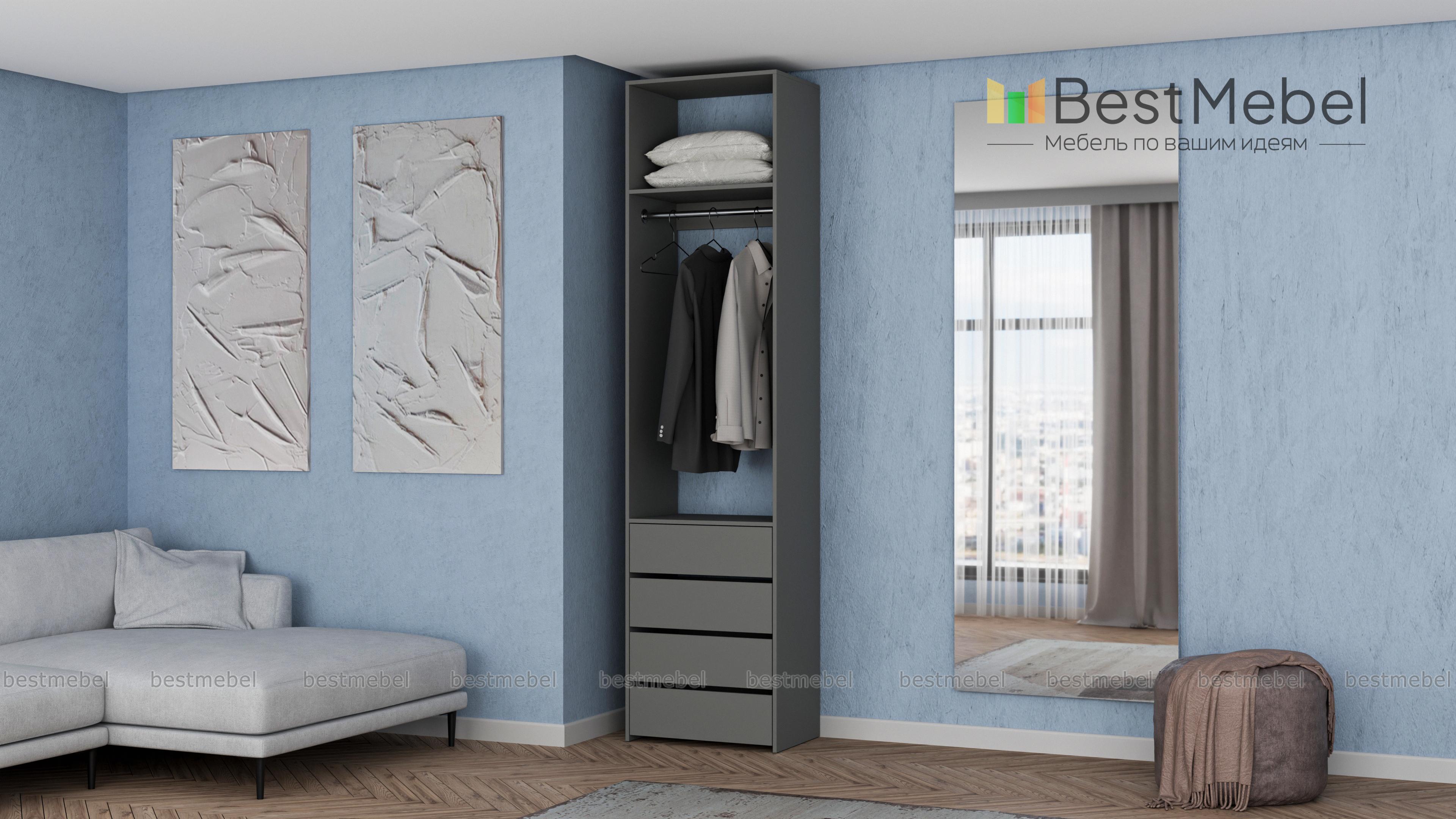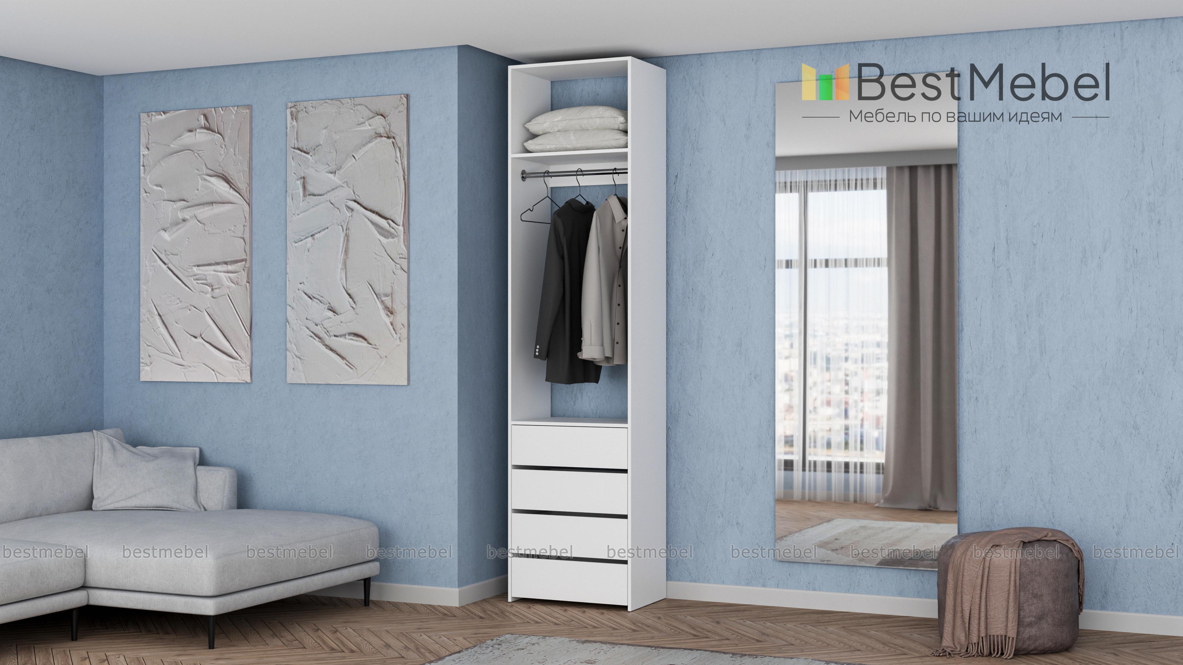 Стеллаж для одежды Мирта 32 BMS позволит вам эффективно использовать даже небольшое пространство. Для удобного доступа к одежде и обуви открытая конструкция оборудована металлической штангой, верхней полкой и четырьмя выдвижными ящиками. Лаконичный дизайн без декора и накладной фурнитуры легко сочетать с разными по стилю интерьерами. Купить стеллаж для одежды Мирта 32 BMS вы сможете на сайте нашего интернет-магазина в необходимом размере и оттенке.