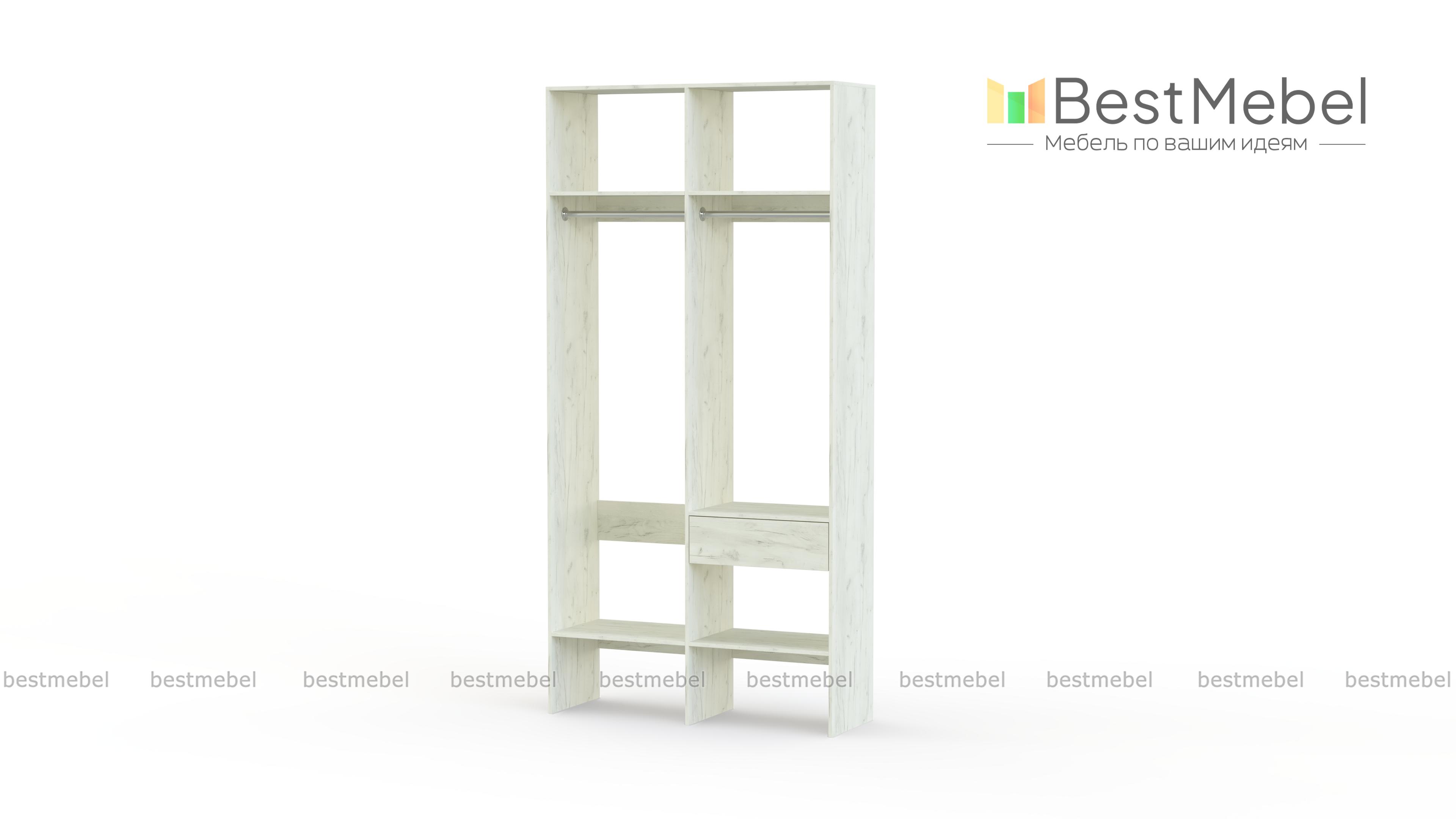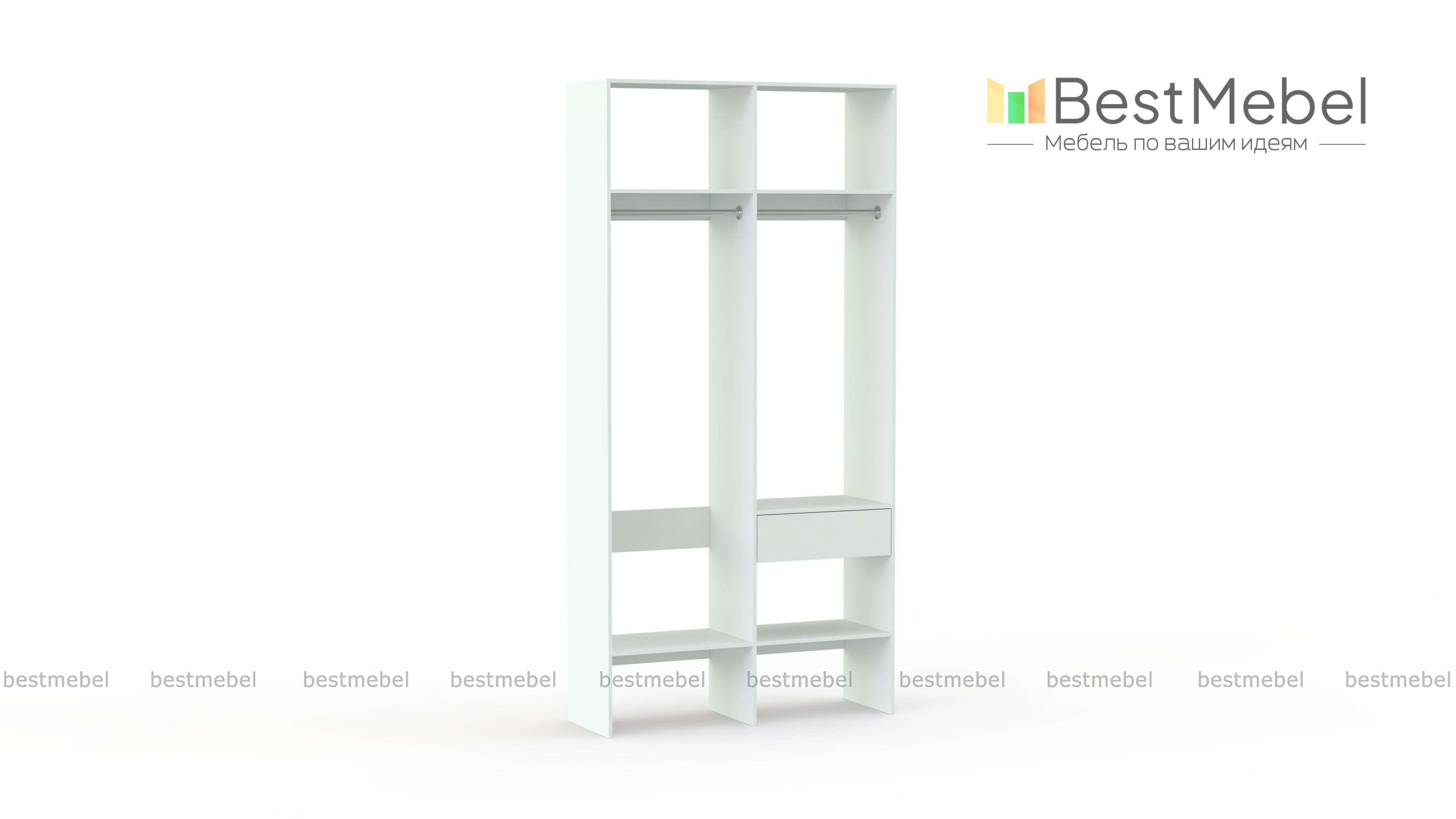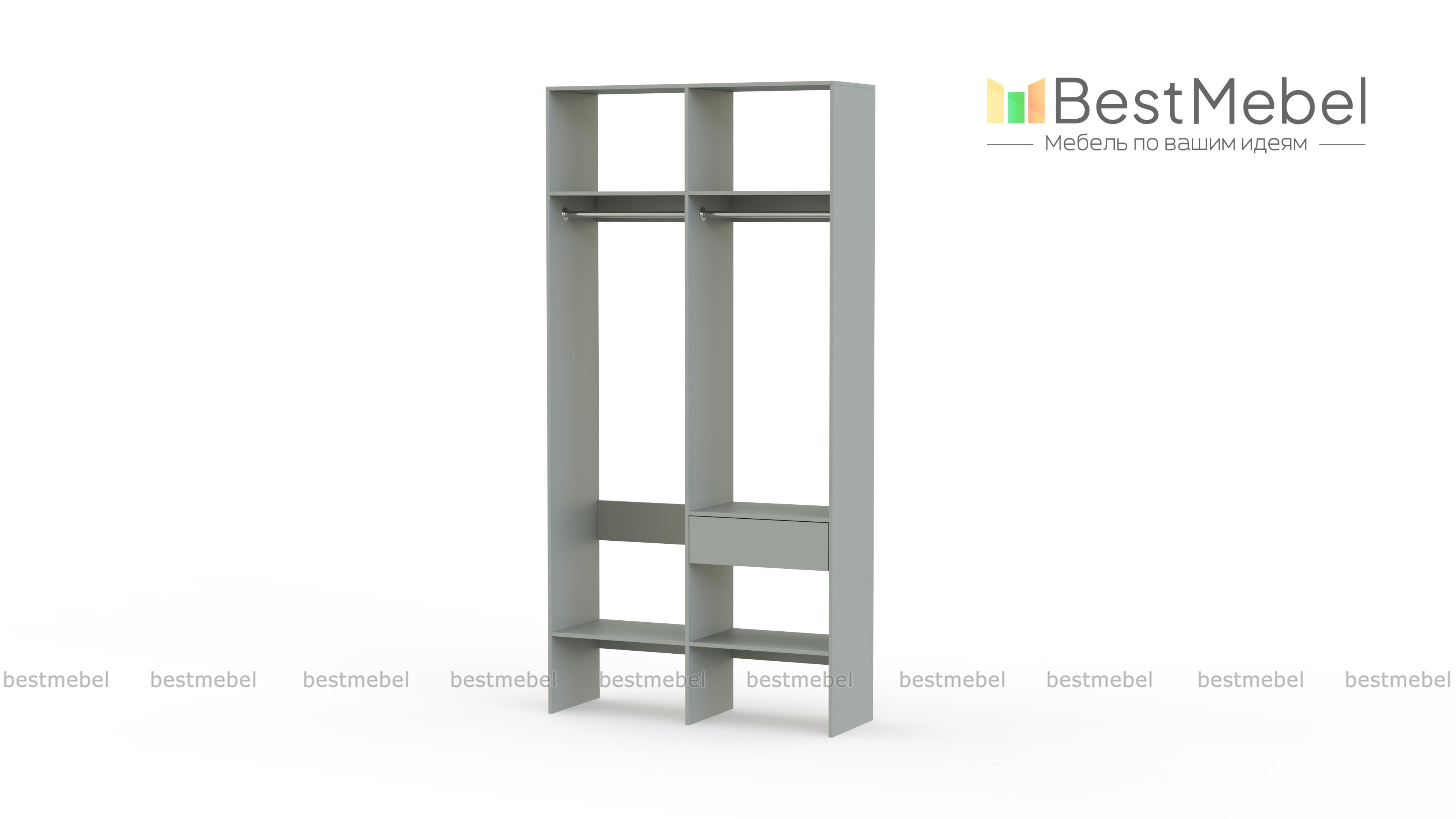 Стеллаж для одежды Мирта 42 BMS для гардеробной или прихожей выполнен в нейтральном светлом оттенке из ламинированной ДСП. Компактная и легкая двухсекционная конструкция объединила два платяных отделения разной высоты, верхние и нижние полки, а также выдвижной ящик, предназначенный для мелочей. В открытом стеллаже будут всегда на виду ваша повседневная одежда и обувь. Купить стеллаж для одежды Мирта 42 BMS вы сможете в нашем интернет-магазине, самостоятельно подобрав размеры и цвет.