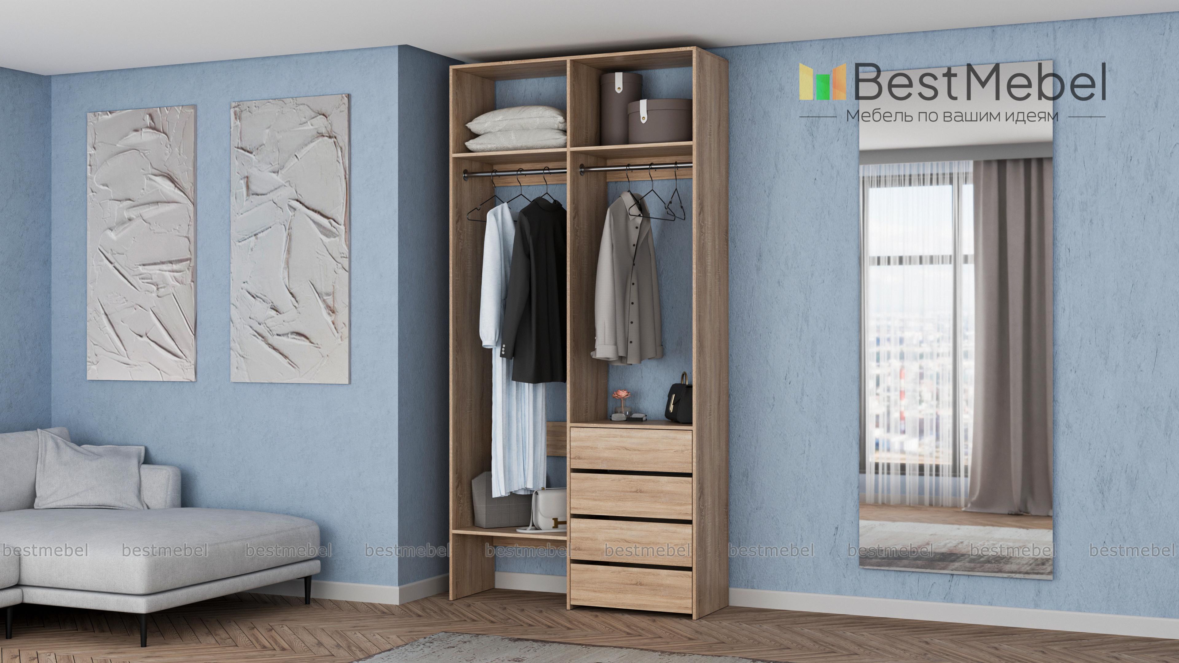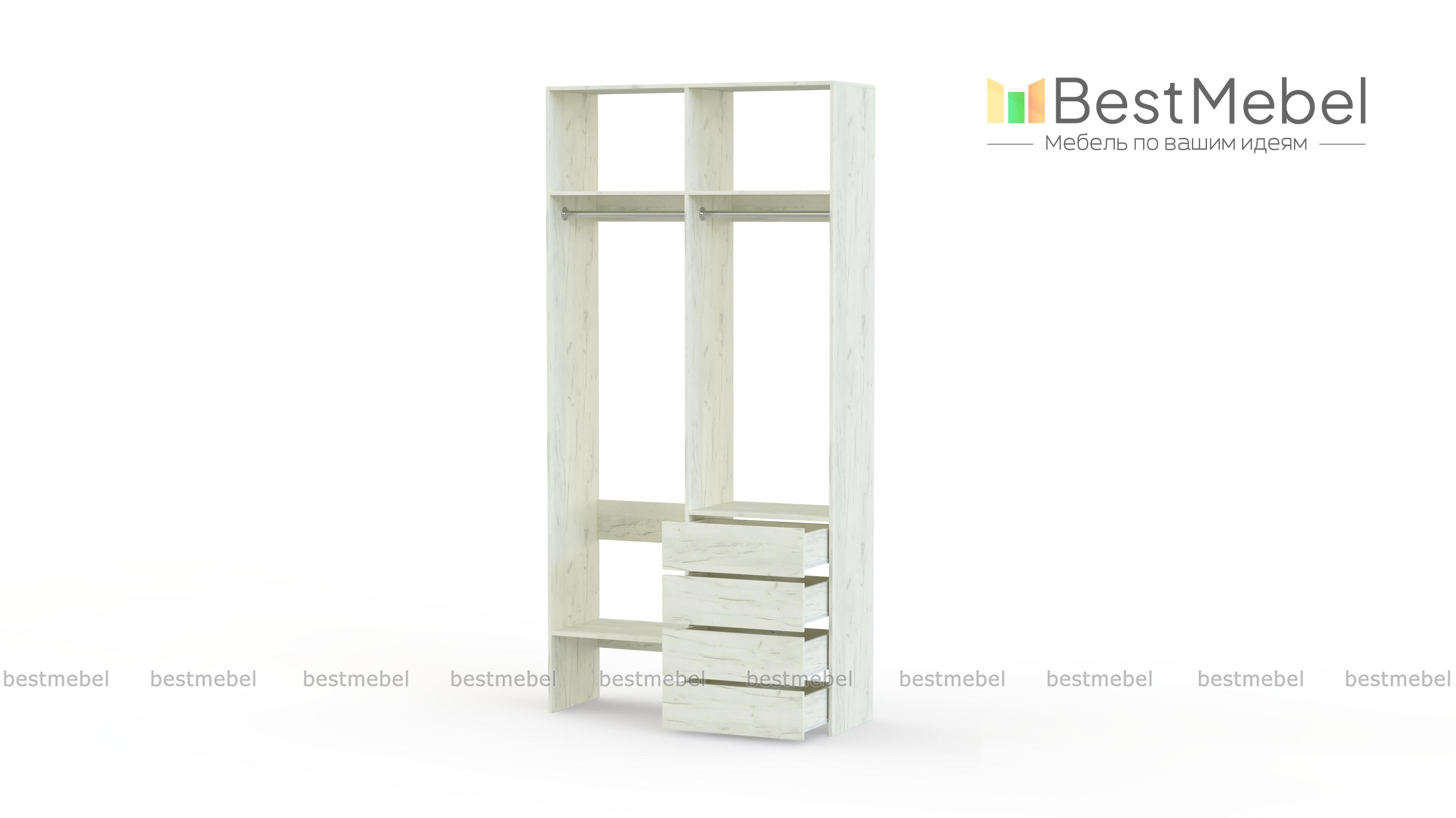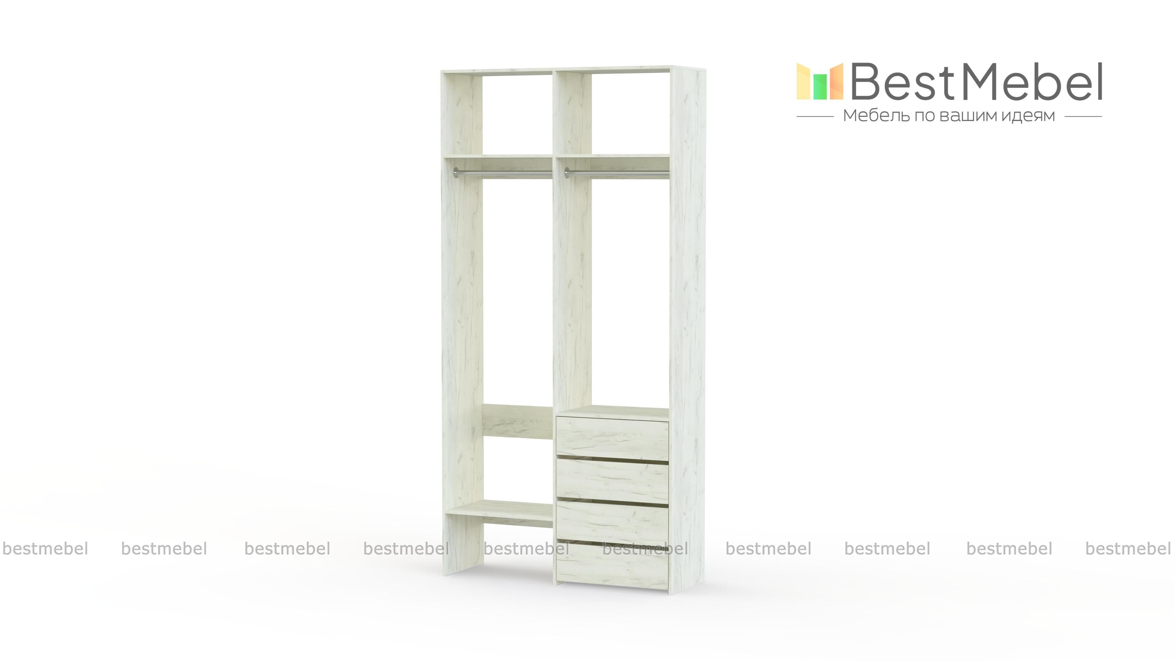 Стеллаж для одежды Мирта 45 BMS позволяет выделить зоны для хранения разных вещей. Комплектация включает в себя отделения со штангами для короткой и длинной одежды, полки сверху и снизу, а также ряд из четырех выдвижных ящиков справа. Двухсекционный стеллаж выполнен в светлом базовом оттенке и отлично смотрится на небольшом метраже. Купить стеллаж для одежды Мирта 45 BMS вы всегда сможете в нашем интернет-магазине, подобрав нужные размеры и оттенок по каталогу.