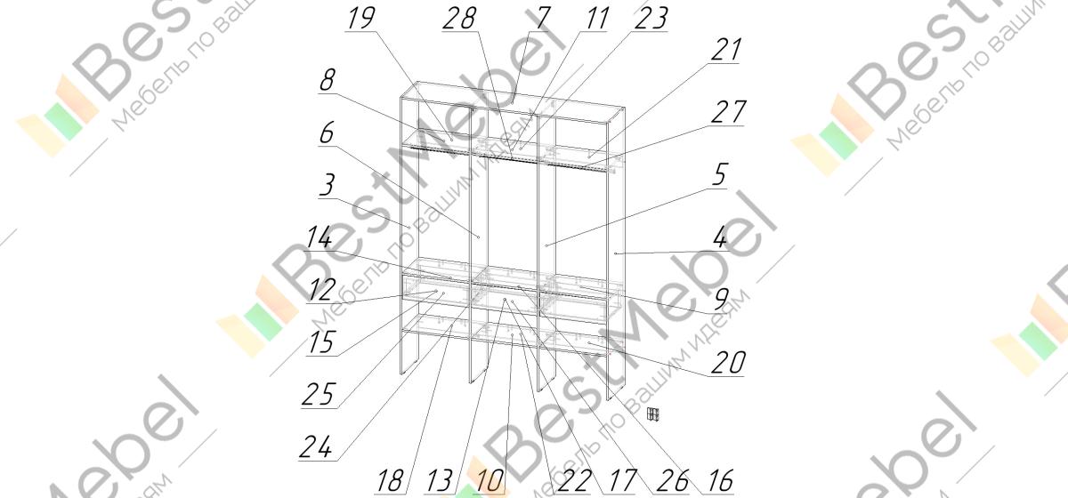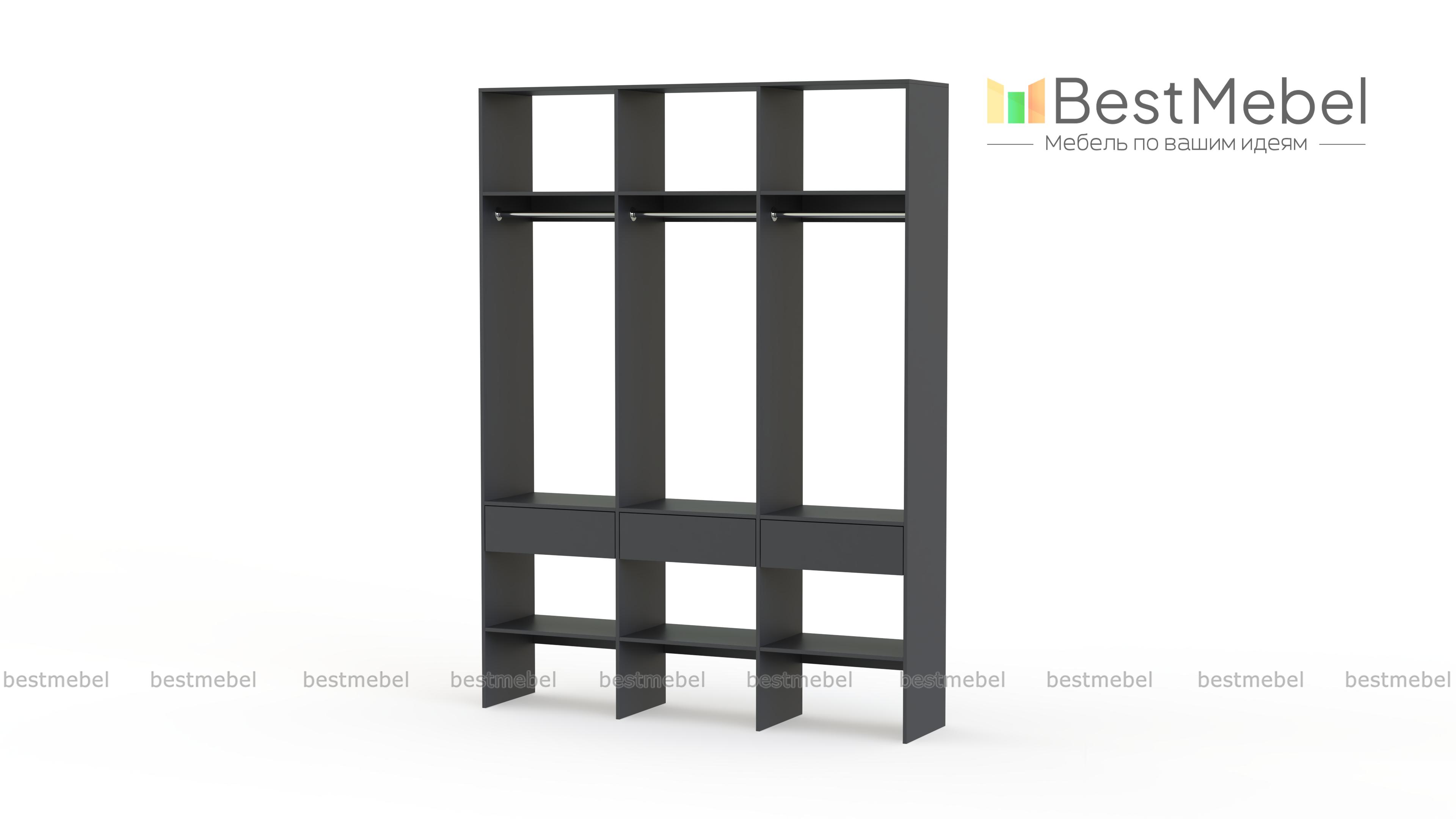 Стеллаж для одежды Мирта 51 BMS — визуально легкая и надежная конструкция из ламинированной ДСП, которую легко вписать в интерьер. Трехсекционный стеллаж прекрасно подходит для современных прихожих и гардеробных. Для вашего удобства три бельевых ящика и обувные полки располагаются снизу, а пространство над штангами занято полками для редко используемых вещей. Купить стеллаж для одежды Мирта 51 BMS вы сможете на сайте нашего интернет-магазина, подобрав цвет и размеры.
