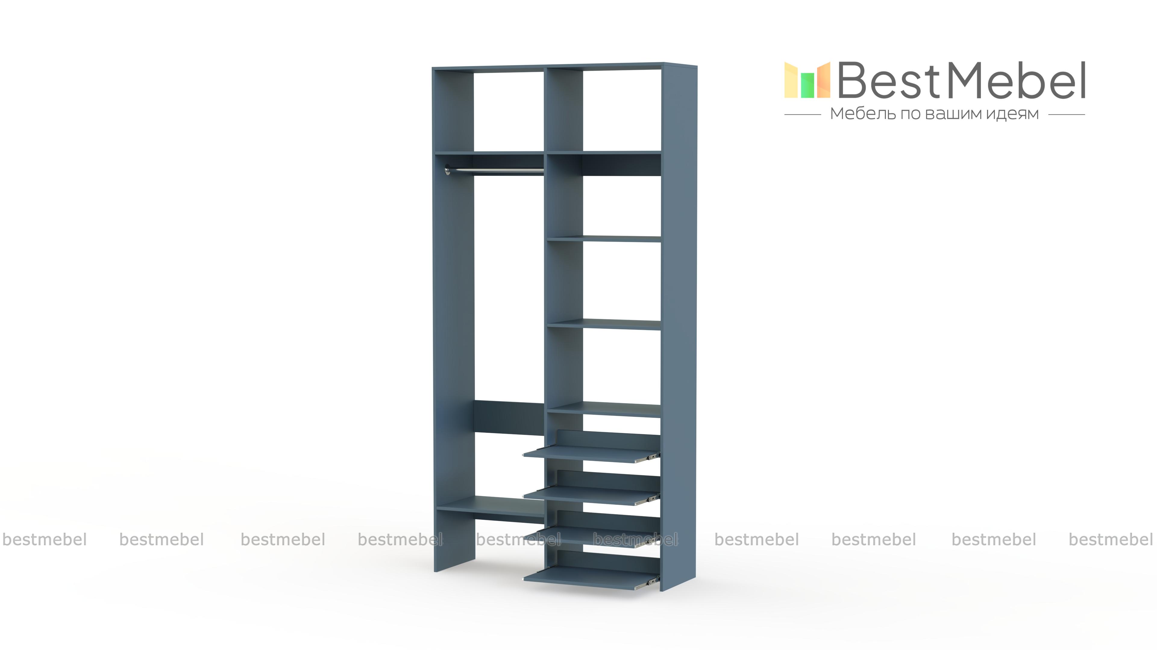 Стеллаж для одежды Мирта 79 BMS подойдет вам, если вещей немного. Компактная по ширине конструкция оборудована не только штангой для вешалок и стандартным набором бельевых полок, но и четырьмя выдвижными панелями. В нейтральном природном оттенке стеллаж выглядит современно, а простая форма хорошо вписывается в пространство. Купить стеллаж для одежды Мирта 79 BMS, изготовленный по индивидуальным размерам, вы всегда сможете на сайте нашего интернет-магазина.