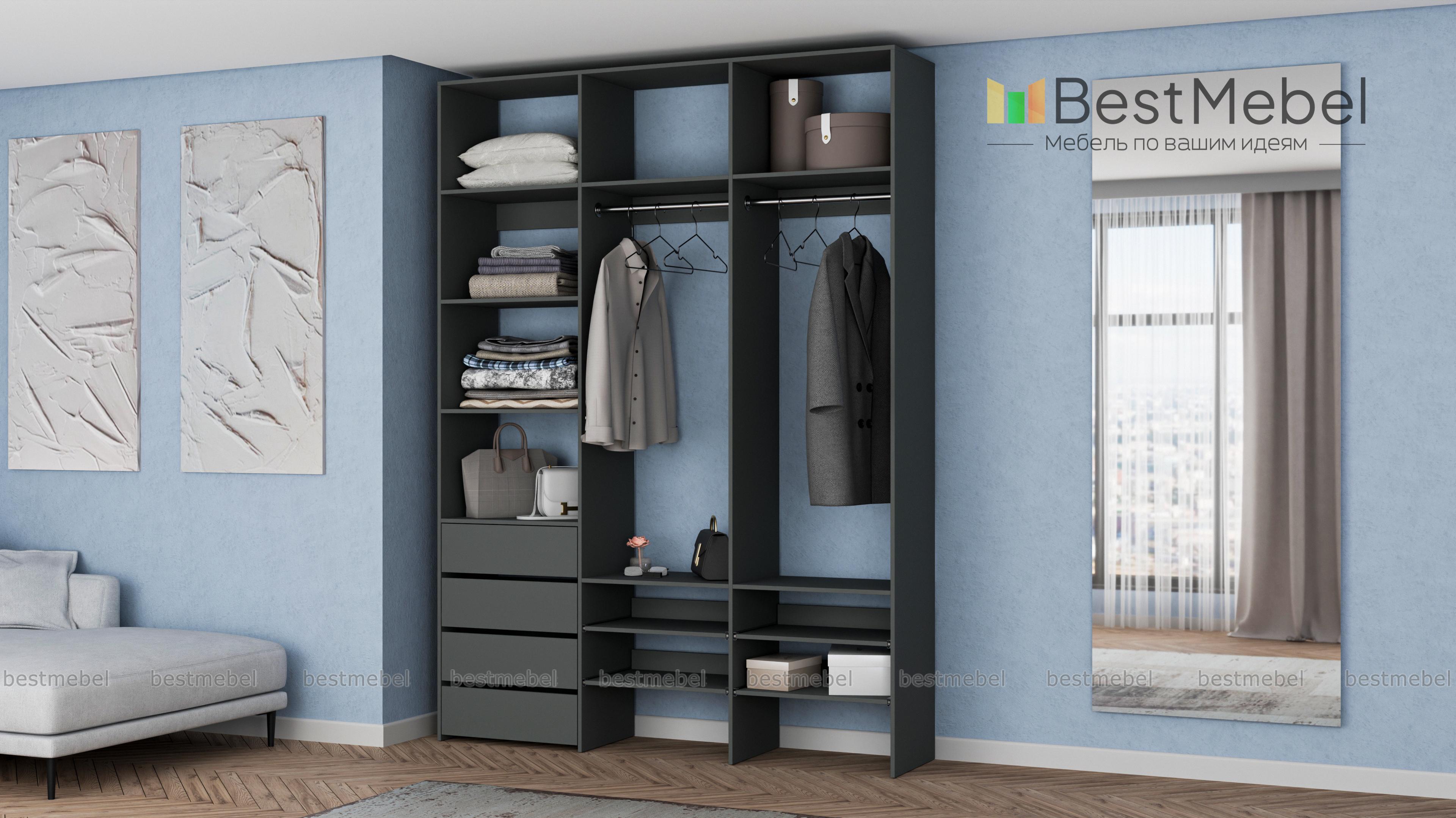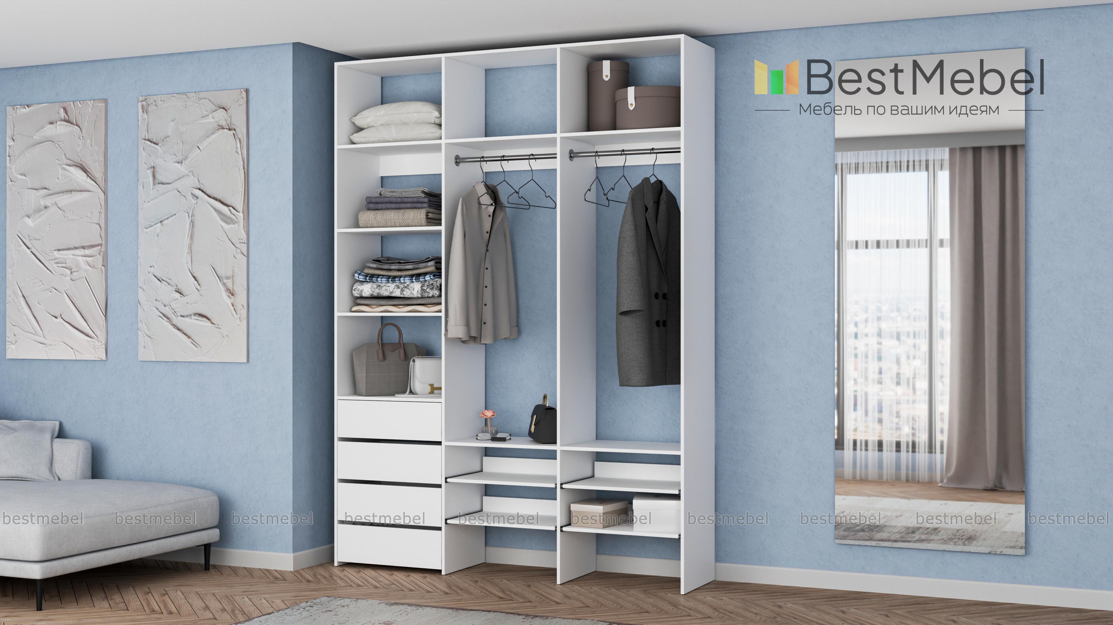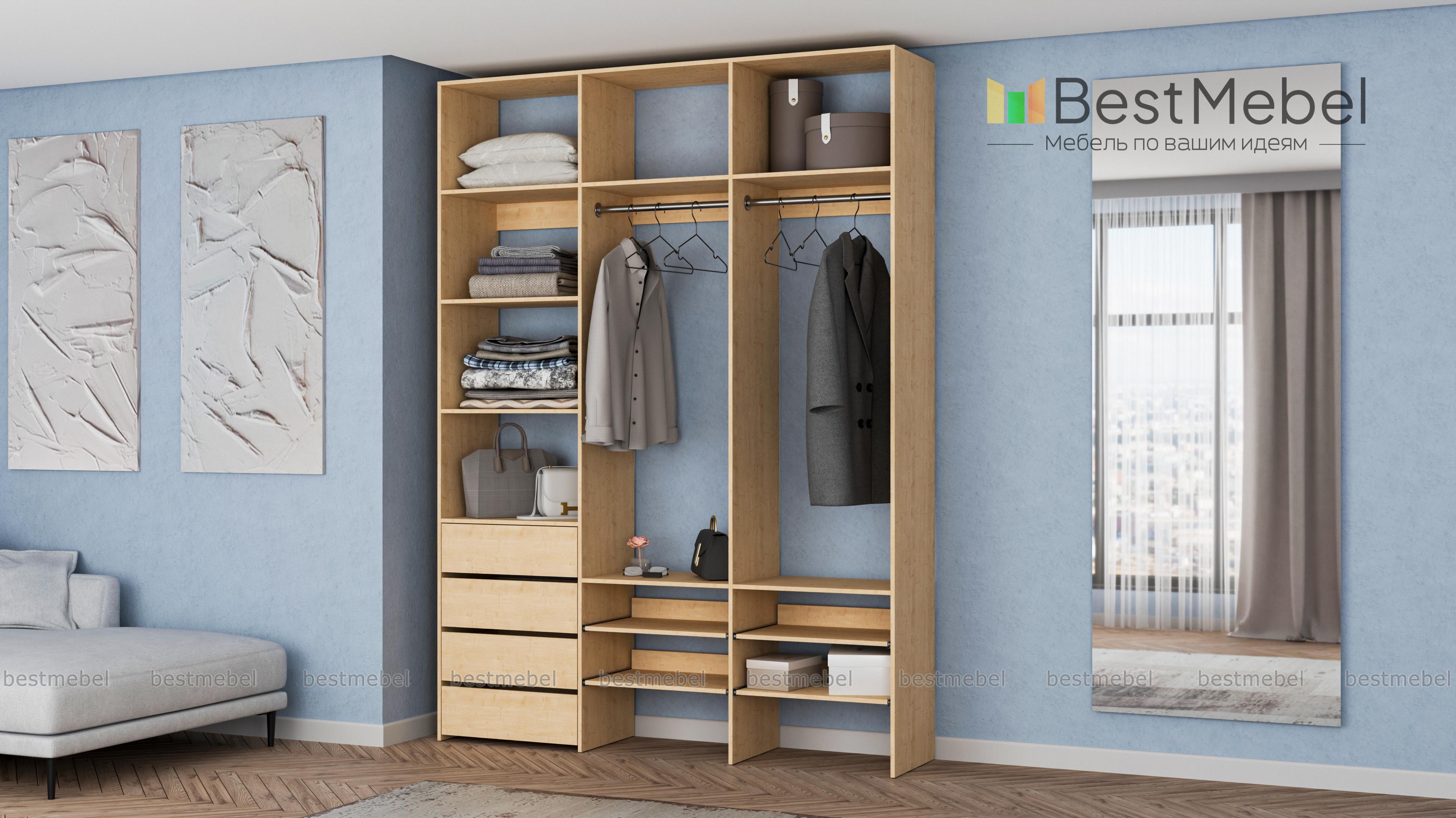Стеллаж для одежды Мирта 99 BMS помогает сохранить порядок в вашей прихожей или гардеробной. Открытая конструкция укомплектована двумя одежными штангами, бельевыми и выдвижными полками, а также четырьмя ящиками для мелочей. Материал изготовления — ламинированная плита древесного оттенка, которая выдерживает большие нагрузки. Купить стеллаж для одежды Мирта 99 BMS в необходимом вам размере и цвете вы сможете купить на сайте нашего интернет-магазина.