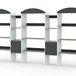 Стеллаж Лист 6 BMS поможет разместить на удобной для детей высоте учебные пособия, игрушки, поделки и многое другое. Демонстрационный стеллаж оборудован как открытыми полками разной ширины, так и двумя глухими распашными шкафчиками. Модель с декоративными элементами в форме крыши выполнена из экологичной и износостойкой ламинированной ДСП, гармонично сочетая нейтральные и яркие цвета. Купить стеллаж Лист 6 BMS для меблировки игровой комнаты вы сможете недорого в нашем интернет-магазине.