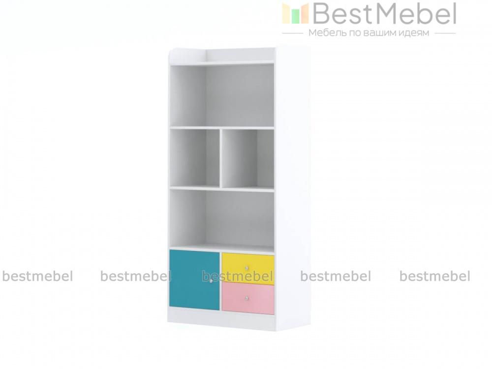 Стеллаж Радуга 3 BMS дополнит интерьер современной детской и компактно разместит любимые книги, игрушки, принадлежности для творчества и многое другое. Комбинированная модель оборудована как открытыми полками, так и глухим распашным отделением и парой выдвижных ящиков с ручками-кнопками. Корпус универсального белого цвета дополняют цветные фасады в зеленом и бирюзовом оттенках. Купить стеллаж Радуга 3 BMS и легко поддерживать в комнате порядок вам поможет наш интернет-магазин.