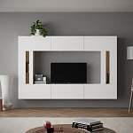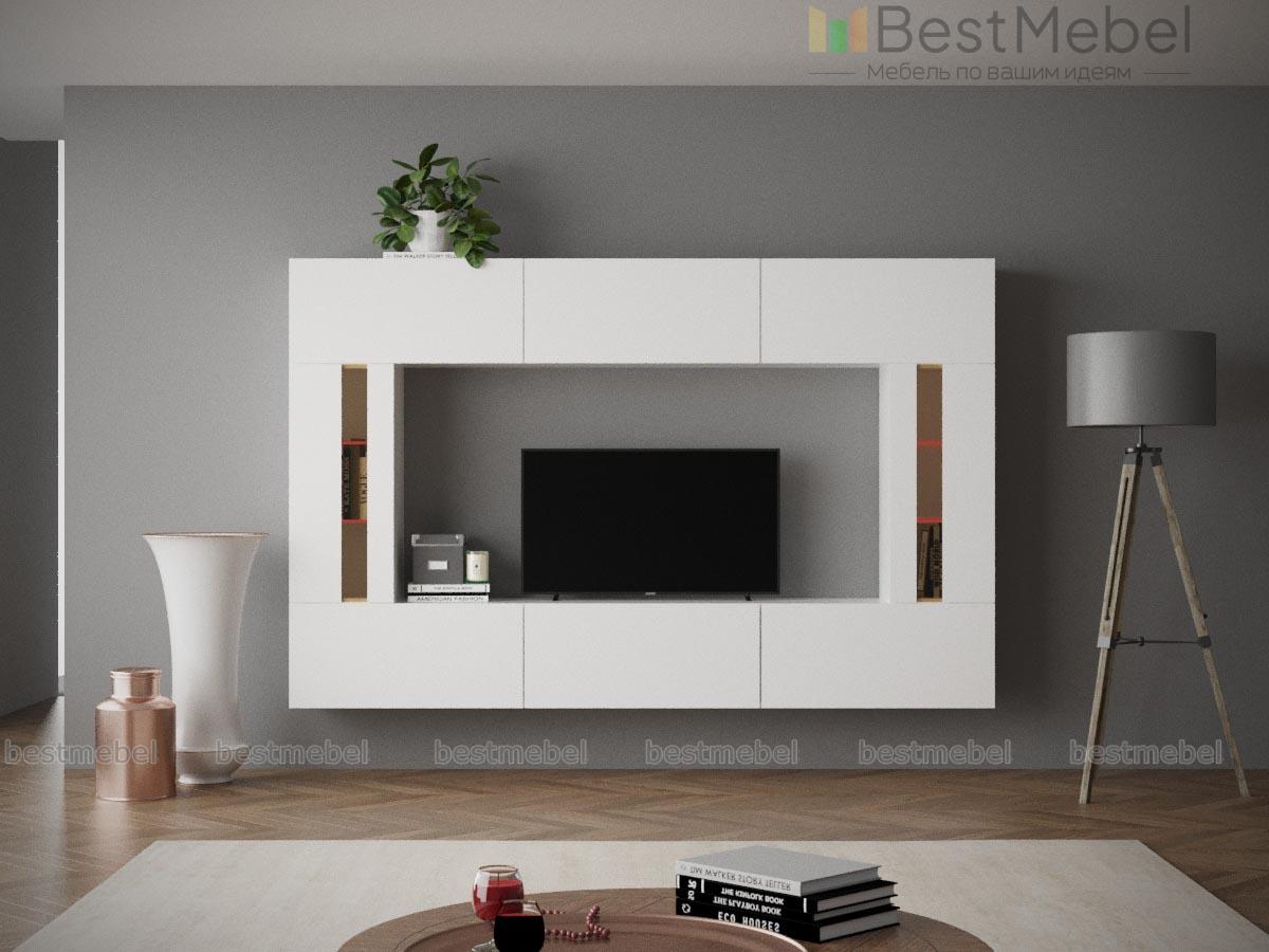 Ультрасовременная гостиная Cubica вариант 2-2 BMS придется по душе ценителям нестандартных решений. Навесные модули этого комплекта позволят сэкономить в помещении место, облегчат уборку и придадут комнате стильный вид. Белые глянцевые фасады лаконичны, эффектны и оборудованы эргономичной системой открывания без ручек. Гостиная состоит из одинаковых по размеру прямоугольных элементов и навесных шкафов, декорированных узкими стеклянными вставками.
