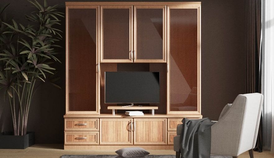Стенка Аккорд-6 BMS будет уместна даже в малогабаритных помещениях благодаря компактным размерам. Классическая модель порадует владельцев элегантным дизайном и продуманной конструкцией. Стенка выполнена в древесных тонах, декорирована карнизом и фурнитурой, фасады – рамочные. Особенно эффектный вид модели придают просторные витрины. Для ТВ предусмотрена ниша с подставкой, а бытовые мелочи легко разместятся в распашных отделениях и выдвижных ящиках. Купить стенку Аккорд-6 BMS, подобрав оптимальный оттенок, приглашаем в наш интернет-магазин.