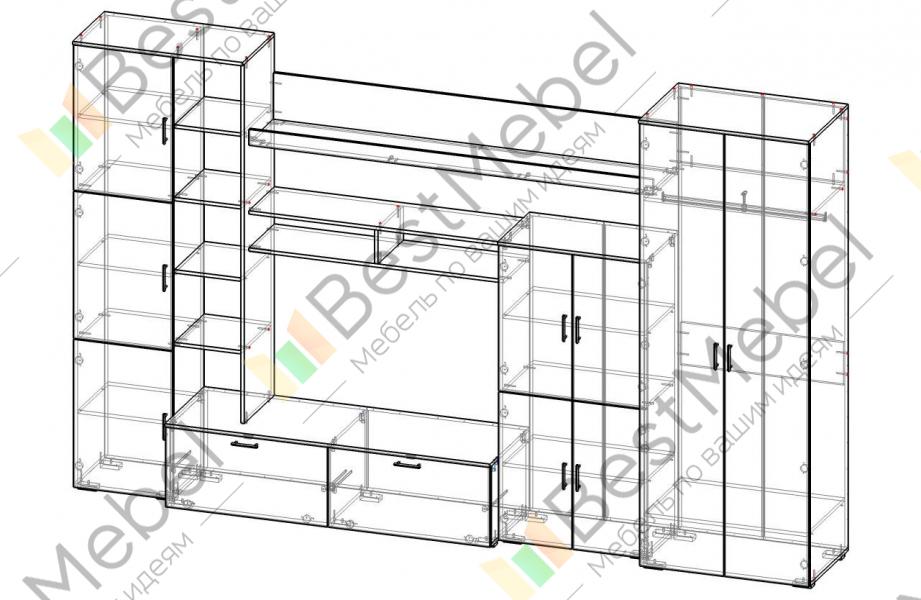 Отличная стенка, сделали по моим размерам, учли все пожелания, собрали её мы сами, все детали пронумерованны. Плюс дали подарок. Заказ 00000572808, изделие ЭСКИЗ №00000572808 Стенка для гостиной Атлантида-5 BMS (3500х2220х510)