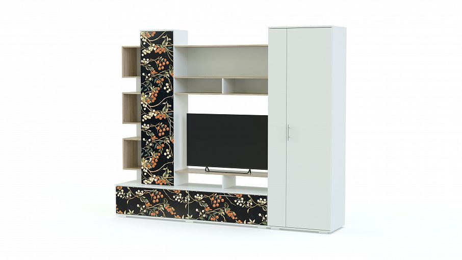 Стенка для гостиной Нил 11 BMS - это готовое решение для небольшой квартиры, студии или детской. Гармоничную современную композицию составляют шкаф с платяным отделением, ТВ-тумба, пенал и оригинальные полки для книг и любимого декора. Яркий акцент в лаконичном современном дизайне - оформленные стойкой «фруктовой» фотопечатью фасады. Купить стенку для гостиной Нил 11 BMS в необходимом размере и цвете вы всегда сможете на сайте нашего интернет-магазина.