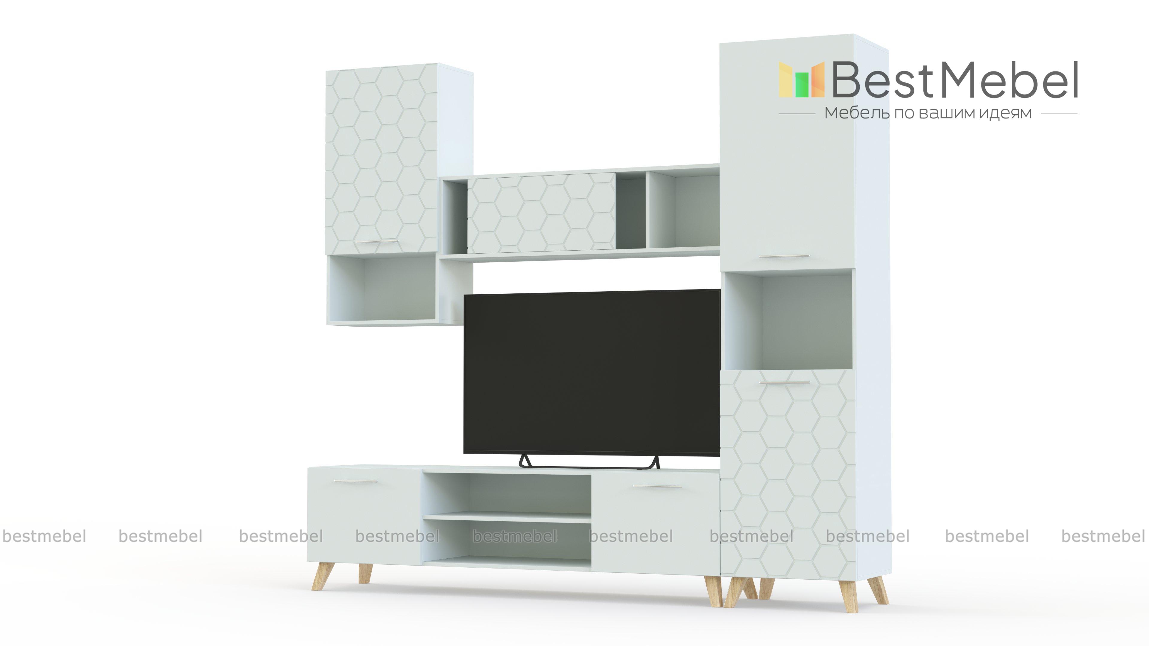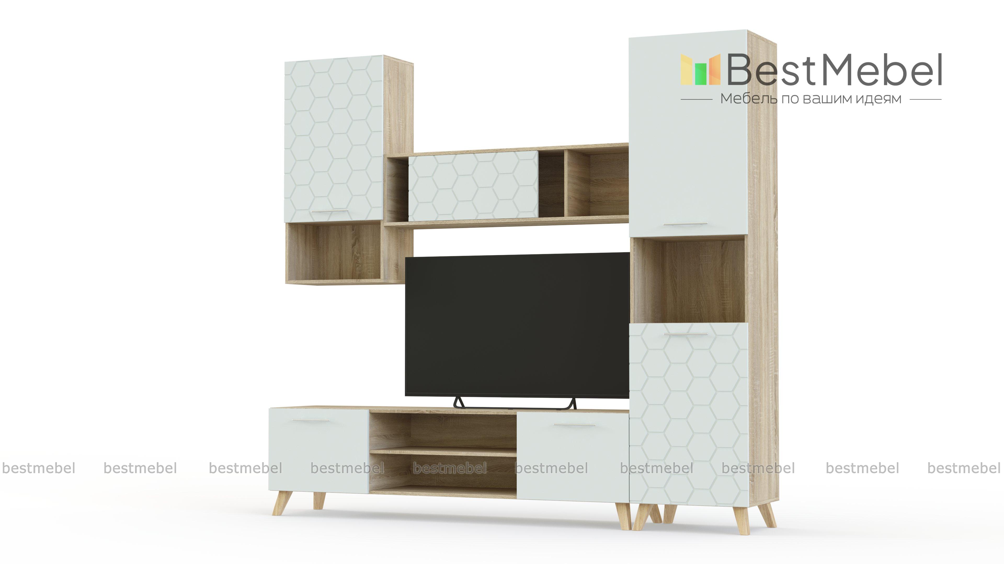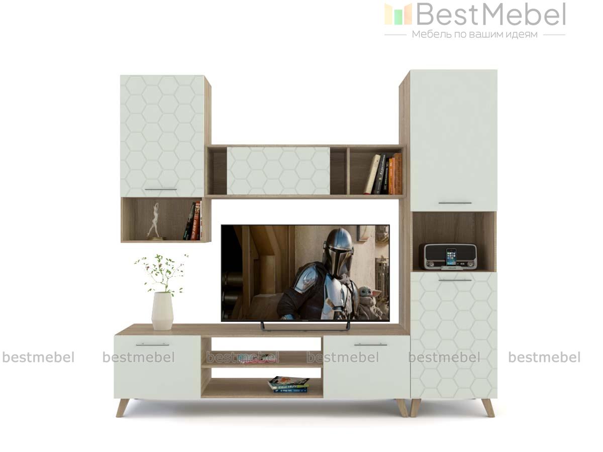 Стенка для гостиной Ромира 9 BMS состоит из отдельных модулей, которые легко комбинируются между собой. Композиция для оформления зоны ТВ включает в себя низкую тумбу под аппаратуру с нишами, пенал с открытой секцией, навесной распашной шкафчик и книжную полку. Визуальную легкость предметам придают высокие скошенные ножки и сочетание светлых бежевых тонов с фрезеровкой. Купить стенку для гостиной Ромира 9 BMS вы сможете в нашем интернет-магазине по доступной цене.