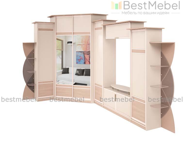 Стенка-купе Поль 1 BMS – это эффектная современная вариация горки. Разноуровневая угловая композиция гармонично дополнит просторные гостиные в стиле модерн, выгодно используя особенности планировки. Стенка включает в себя платяной шкаф-купе с зеркалами, пеналы и секцию с тумбой по ТВ и антресолью, а особенную визуальную легкость конструкции придают торцевые стеклополки с фигурно вырезанными задними панелями и нежная расцветка в пастельных тонах. Купить стенку-купе Поль 1 BMS приглашаем в наш интернет-магазин.