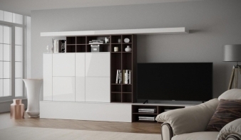 Стенка Loft BMS – роскошная модульная система для современных интерьеров в стиле лофт и минимализм. Практичная модель поможет оборудовать комфортное и функциональное пространство гостиной. Продуманная комбинация низких широких тумб, открытых полок и закрытых отделений позволит разместить аудио- и видеоаппаратуру, книги, предметы декора и многое другое. Цветовое решение – натуральные древесные оттенки и белый глянец фасадов. Дверцы открываются легким нажатием. Купить Стенку Loft BMS, подобрав оптимальные параметры, вы сможете в нашем интернет-магазине по лучшей цене.