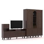 Стенка Мария 2 BMS имеет практичную модульную конструкцию и выполнена в элегантном классическом стиле. Оригинальная композиция включает в себя две тумбы – широкую под аппаратуру и высокую узкую с распашным отделением, выдвижными ящиками и нишей, распашной шкаф с зеркалом и два бельевых пенала. Фасады в темном древесном оттенке венге декорированы фрезерованным рисунком ромбами. Купить стенку Мария 2 BMS для небольшой гостиной вы всегда сможете в нашем интернет-магазине.