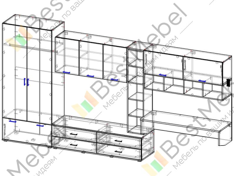 Гостиная Тиса-229 BMS – многофункциональный комплект в современном стиле, который поможет организовать не только зону отдыха, но и рабочее место. Универсальная расцветка, сочетающая древесные тона корпуса и белые фасады, украсит любой тип интерьера. В комплект входят двухдверный шкаф для одежды, тумба под ТВ с выдвижными ящиками, навесные шкафчики, открытые полки и закрепленная на навесной панели столешница, подходящая для письма или работы за ноутбуком. Купить стенку Тиса-229 BMS по лучшей цене вы сможете в нашем интернет-магазине.