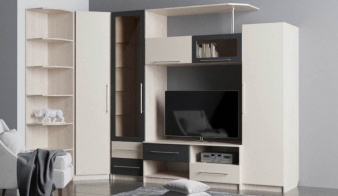 Угловая стенка Нега 52 BMS гармонично впишется в интерьер небольших современных гостиных и студий. Модель Г-образной формы выгодно использует особенности планировки и оборудована всем необходимым, чтобы оформить зону ТВ и компактно разместить вещи. В комплекте шкафы для одежды и домашнего текстиля, витрина, тумба под ТВ, антресольные полки и элегантное торцевое завершение. Фасады нейтральной бежевой гаммы дополнены контрастными вставками. Купить угловую стенку Нега 52 BMS приглашаем недорого в наш интернет-магазин.