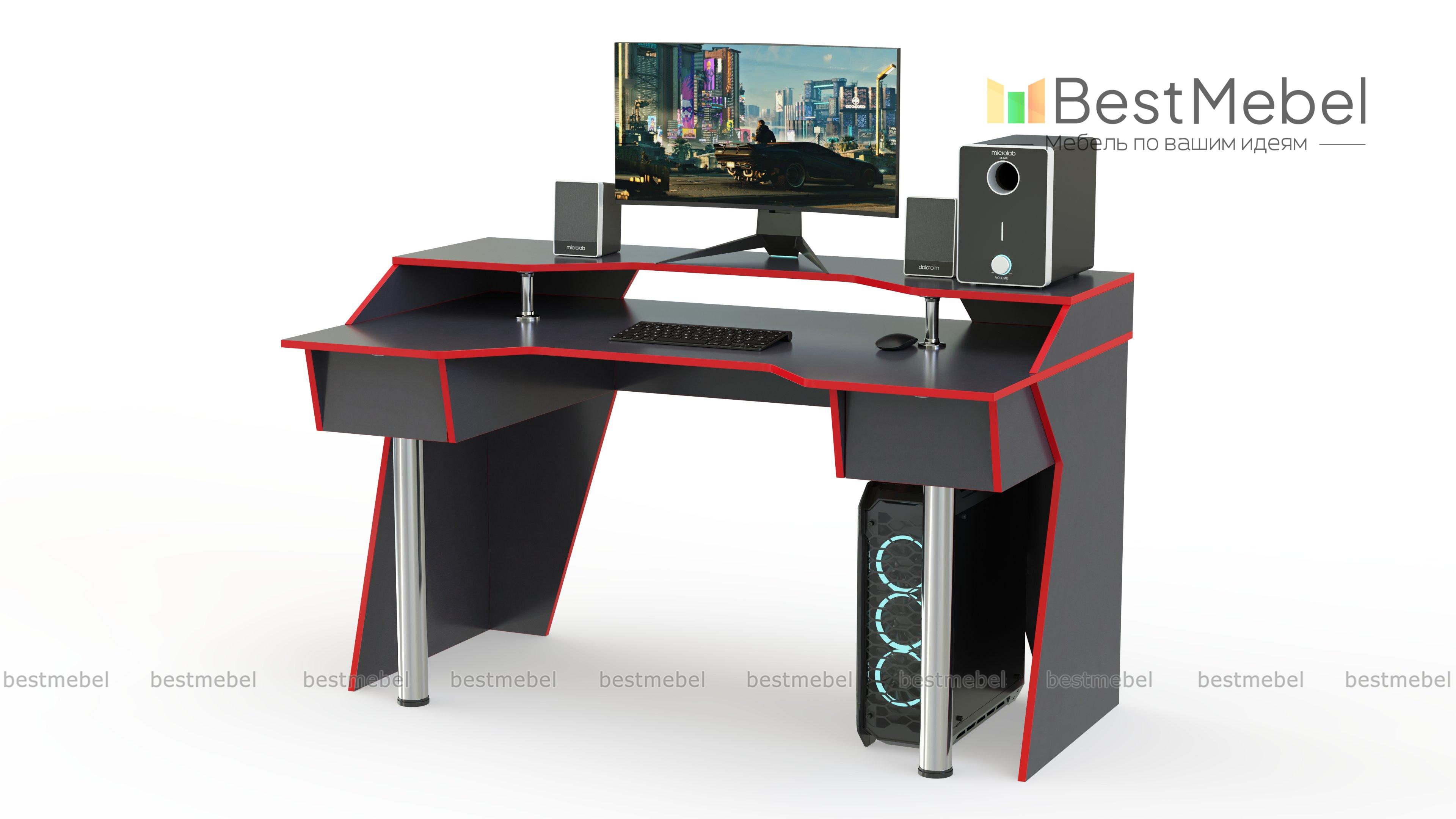 Игровой стол Маршал 4 BMS отличается ультрасовременным дизайном и выполнен в нейтральном черном цвете с контрастной белой кромкой. Устойчивая благодаря комбинированным опорам, модель сочетает стильную геометрию и хорошую эргономику. Столешница с трапециевидным вырезом переднего края дополнена надстройкой под монитор и периферийные устройства, а также двумя боковыми выдвижными ящиками для мелочей. Купить игровой стол Маршал 4 BMS приглашаем в наш интернет-магазин с выбором фурнитуры и цвета по каталогу.