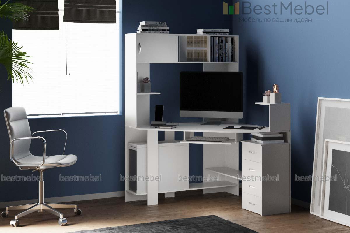 Купив угловой компьютерный стол FLASHNIKA - Флеш 33 BMS вы решите все проблемы с обустройством рабочего места дома либо в офисе. Хороша модель для комнаты школьника или студента. В ней воплощены мечты комфортном пребывании за компьютером. Здесь и широкая столешница, и отдельная полка для клавиатуры, и специальное отделение под системный блок. Красивая надстройка с открытой и закрытой полкой, возвышающаяся над столом, позволит удобно пользоваться справочной литературой, аккуратно разложить необходимые предметы. В комплект изделия входят целых четыре выдвижных ящика, а также полка для документов под столешницей. Не забыли производители о подставках для колонок, которые установлены в углах столешницы. Модный компьютерный стол можно приобрести по выгодной цене на нашем сайте, подобрав для него любимый цвет.