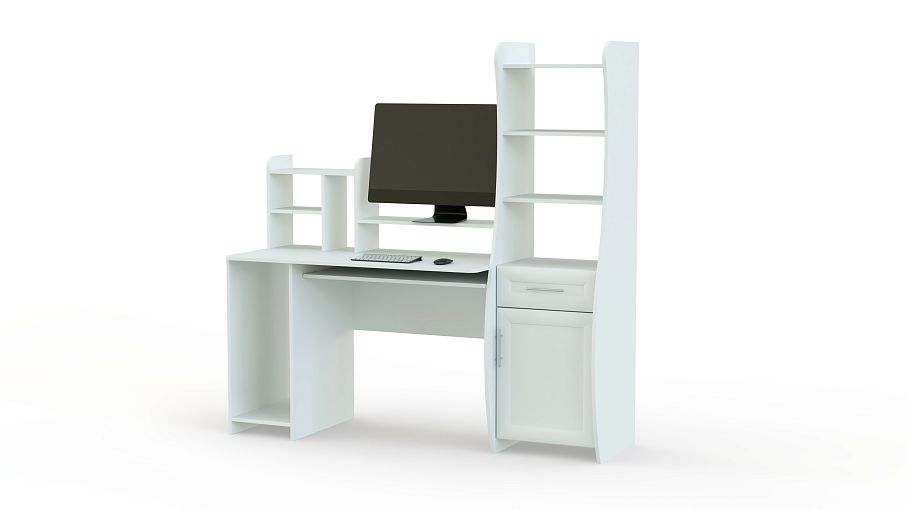 Эта модель привлекает особое внимание необычной формой боковой тумбы. Ее изогнутая форма придает мебели особый стиль и современный вид. Компьютерный стол Магнат имеет специальное место под системный блок, полку для монитора и выдвижную полочку для клавиатуры. Сбоку находится небольшая полочка мелочей и колонок, а просторная боковая тумба даст возможность разместить все необходимые бумаги, книги, канцелярские принадлежности и т.п. Заказать такую мебель Вы можете для дома или офиса.