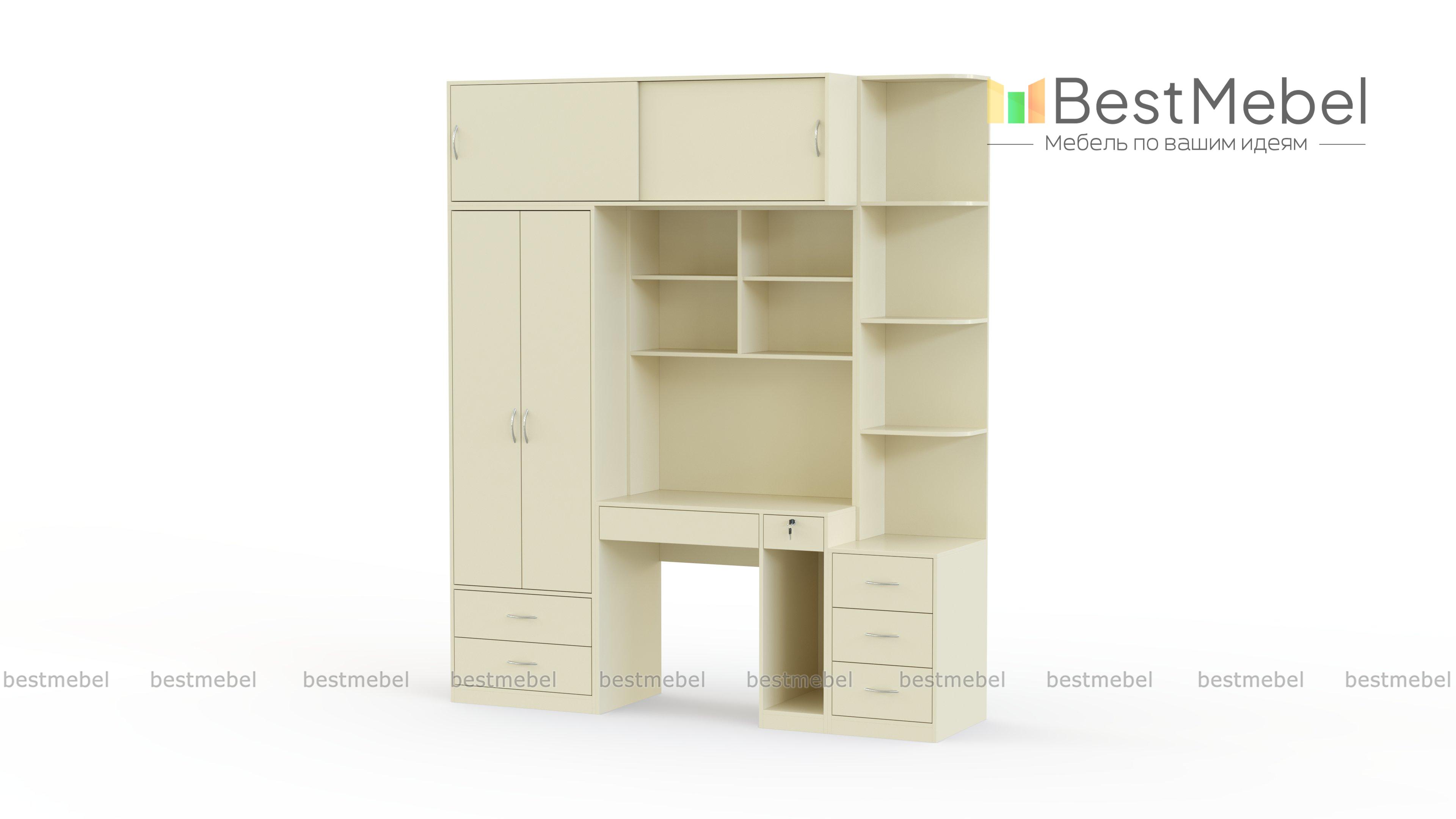 Компьютерный стол Марта 5 BMS обеспечит значительную экономию полезной площади благодаря удобной системе хранения. Многофункциональная композиция включает в себя компьютерный стол, дополненный книжными полками и банкеткой, двухдверный платяной шкаф с ящиками в основании, раздвижную антресоль и секцию с тумбой и торцевыми радиусными полками. Универсальный белый цвет модели визуально облегчает интерьер. Купить компьютерный стол Марта 5 BMS приглашаем в наш интернет-магазин.