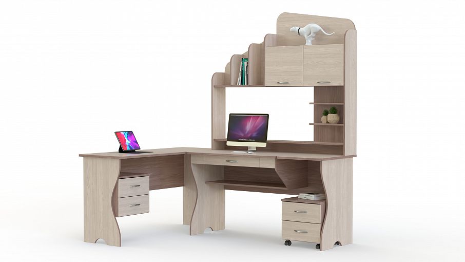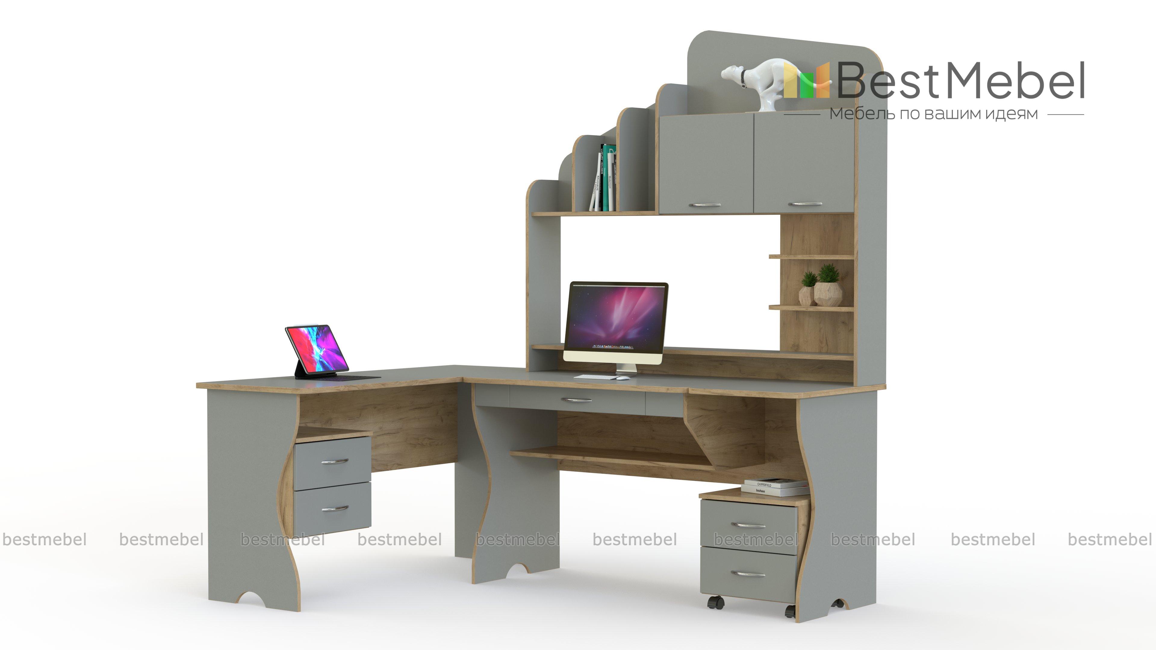 Компьютерный угловой стол Сансар BMS представляет собой угловую конструкцию для учебы или работы, стильную и эргономичную. В комплекте стол для письма и работы за компьютером, оборудованный устойчивыми боковинами и столешницей, оригинальная надстройка с разноплановыми отделениями, письменный стол с выдвижными ящиками и мобильная тумба. Эффективно используя пространство, модель позволяет разместить под рукой необходимые канцелярские принадлежности и учебные материалы. Купить компьютерный угловой стол Сансар BMS вы сможете в нашем интернет-магазине с учетом оптимальных параметров.