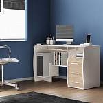Компьютерный стол СК 18 ‒ модель с выдвижными ящиками. На прямоугольной столешнице можно поместить монитор компьютера или ноутбук, также остается достаточно место для предметов, которые необходимы во время работы. На выдвижной полочке под столешницей располагается клавиатура. Полка легко задвинется, когда в ней больше нет необходимости. Имеются ниши для системного блока и принтера. Эту модель можно заказать у нас на сайте.