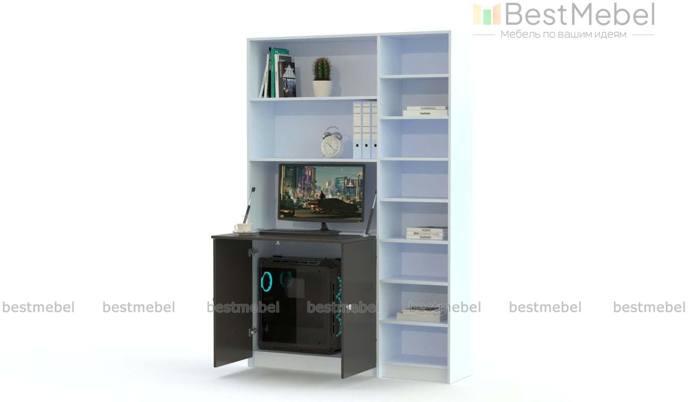 Компьютерный стол-трансформер Мия 2 BMS выполнен в актуальном сочетании белого цвета и имитации поверхности бетона. Высокий шкаф, оборудованный открытыми полками, двухдверным распашным отделением и дополненный стеллажом, поможет разместить необходимые для работы книги, папки и периферийные устройства. В удобный компьютерный стол модель превращает откидная столешница, за которой скрыта ниша под монитор. Купить компьютерный стол-трансформер Мия 2 BMS для функционального современного интерьера вы сможете в нашем интернет-магазине.