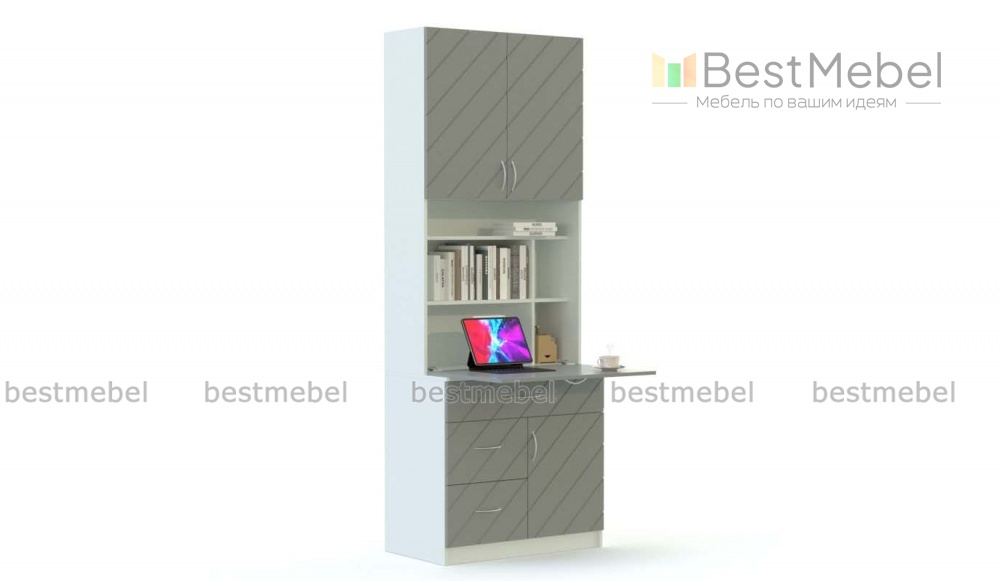 Компьютерный стол-трансформер Нокс 4 BMS станет практичным выбором для помещений ограниченной площади. Высокий секретер с цветным фасадом, декорированным фрезеровкой, может использоваться как книжный шкаф или превратиться в рабочее место. Модель оборудована выдвижными ящиками и распашным отделением в нижней части и закрытыми полками в верхней, а в центре располагается секция с откидной столешницей. Купить компьютерный стол-трансформер Нокс 4 BMS приглашаем в наш интернет-магазин.
