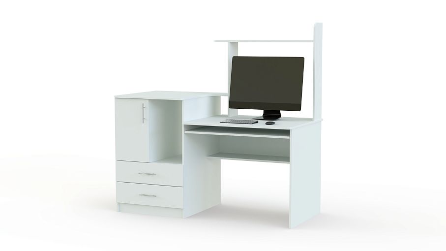 Компьютерный стол №2 Р является очень практичным предметом мебели. Он оснащен 2-я ящиками, отделением с распашной дверью, открытой нишей, выдвижной панелью для клавиатуры. На открытых полках можно разместить комнатные растения, декоративные украшения, фоторамки. Лаконичный стол выполнен в актуальных светлых тонах и оборудован просторной столешницей. Заказать данную модель можно в нашем интернет-магазине в разных размерах и цветовых решениях.