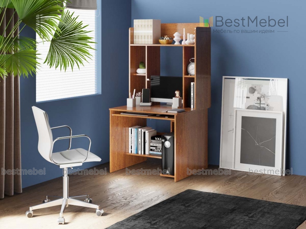 Небольшой компьютерный стол Чак имеет удобную надстройку, малые габариты и доступную цену. Такая модель станет идеальным дополнением интерьера небольшого кабинета, при этом является полноценным рабочим местом. Внизу стола предусмотрено место для системного блока, есть выдвижная полка для клавиатуры, что делает стол еще удобнее. Вверху имеется надстройка с множеством полок, где можно хранить канцелярские принадлежности, бумаги и документы. Купить СК Чак можно на нашем сайте по доступной цене.
