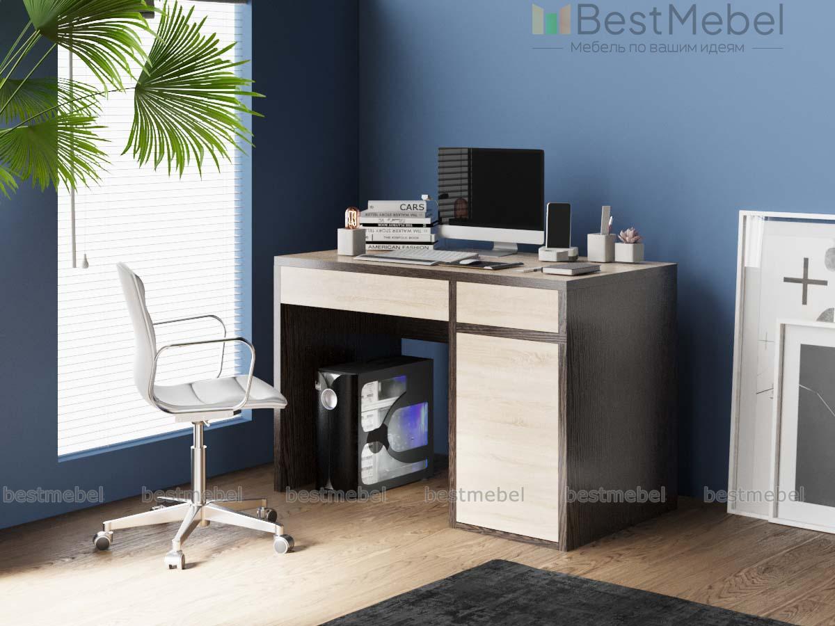 Стол компьютерный Мики ПМ-155.15 BMS воплощает в себе достоинства современного минимализма. Модель с внутренними фасадами без лицевой фурнитуры и декора выполнена из ламинированной ДСП в контрастных древесных тонах. Компактный однотумбовый стол оборудован прямоугольной столешницей, выдвижными ящиками для канцелярских мелочей и распашным отделением. Купить стол компьютерный Мики ПМ-155.15 BMS для работы дома или в офисе вы сможете в нашем интернет-магазине.