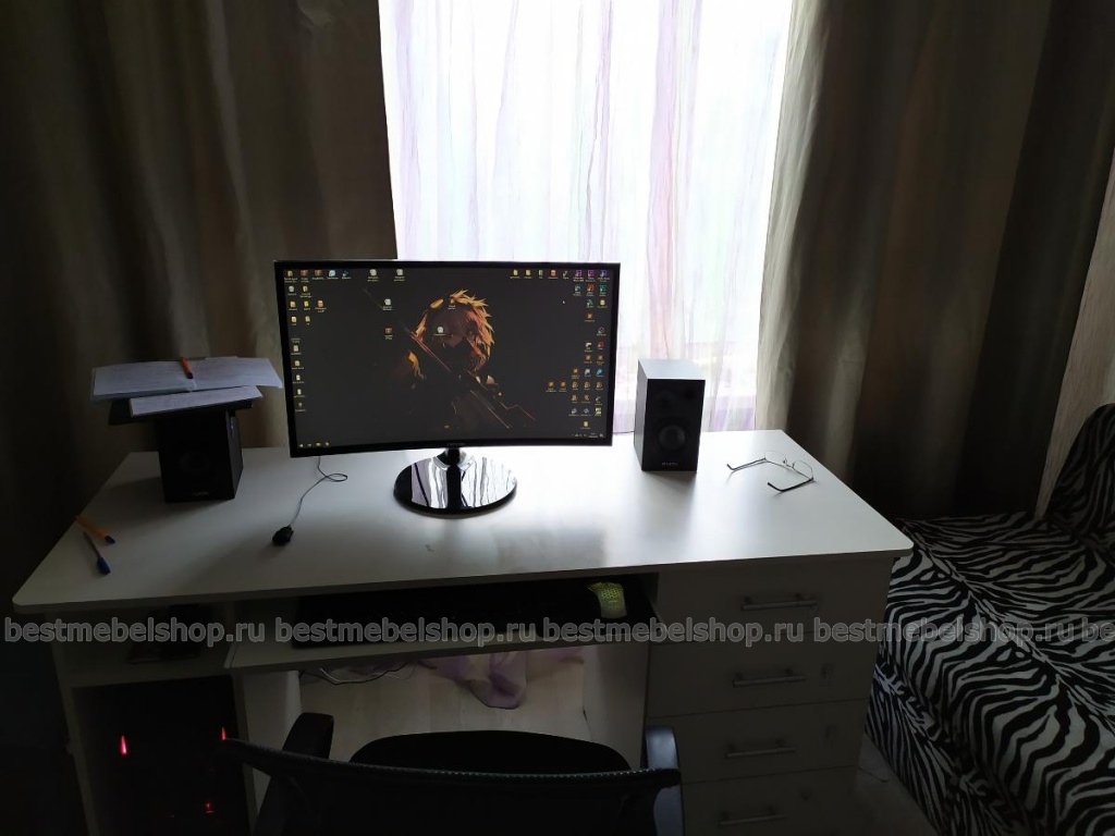 Компьютерный стол очень удобный. Все устраивает. Хорошо вписался в интерьер. Рекомендую.