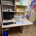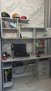 Стол получился очень хорошим. Брали его с расчётом, чтобы можно было также делать уроки и заниматься другой всякой всячиной. Поэтому глубину столешницы увеличили до 800 мм и сделали её прямой, без сужений. Надстройку растянули, чтобы ниша под монитор получилась максимально широкой (получилось 1148 мм), чтобы правая стойка не мешала работать. Результат на фото. Столешницу взяли потолще, 22 мм, так смотрится посолиднее, и не страшно, если целевой пользователь на неё ногами залезет)Собирал сам. Учтите, что для самостоятельной сборки надо иметь минимальные навыки, т.к. подробной инструкции по применению крепежа и последовательности сборки нет. Есть схема расположения деталей и, что очень удобно, каждая деталь имеет наклейку с номером по списку и названием. Не надо гадать, что куда ставится.Без маленькой ложки дёгтя не обошлось, увы. Отверстия крепления надстройки с одной стороны оказались строго над стойкой, стяжки не вставить. Пришлось снимать столешницу, крепить к ней надстройку, и вместе с надстройкой устанавливать на место. Повезло, что было кому помочь, в одиночку я бы такой фокус провернуть не смог. Конструкторы, это ваша недоработка. И неудобно, что не размечены места крепления полки под клавиатуру. В остальном всё отлично. Очень удобно, что можно изменять конструкцию под свои требования. Все пожелания были учтены, конструкторы отвечают очень оперативно. Изготовили и доставили стол быстро и в оговоренные сроки.