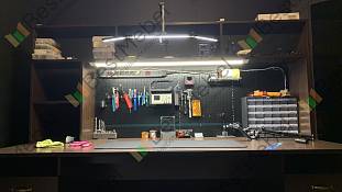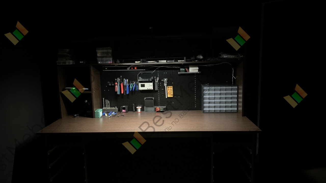 Заказал в этом магазине стол Лайт-15. Заказ 00000107225, изделие ЭСКИЗ №00000107225 Письменный стол Лайт-15 с надстройкой BMS (2084х1492х600). Заказывал с полками под клавиатуру,вырезом под плинтус и утолщенной столешницей. Доставили вовремя, предлагали даже раньше привезти, но я не мог принять товар. Полный комплект, крепеж даже с запасом. Сборка прошла легко, все отверстия и детали совпали. На всех деревянных деталях для удобства наклеены бирки с наименованием детали и куда она идет.Боялся будет шататься, так как большая надстройка на стол, но нет-очень крепкий, все надежно держится. Столом доволен, именно то что нужно для хоббийного уголка.