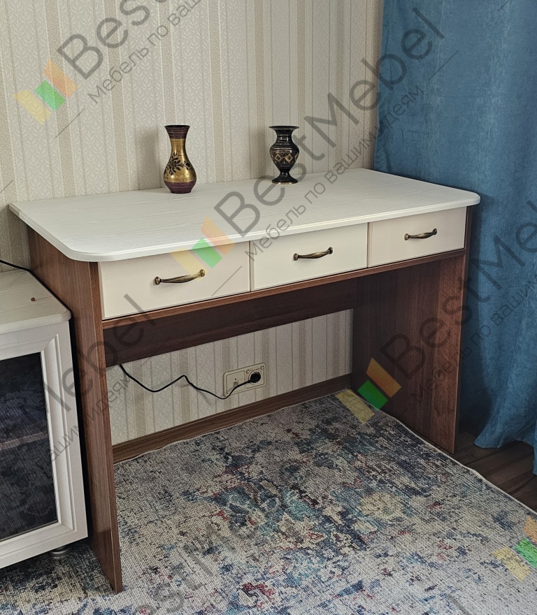 Письменный стол Алиса 3.10 BMS можно поставить в комнате школьника или студента, в небольшой приемной, в гостиничном номере, даже в спальне в качестве туалетного столика. Этому способствуют компактные размеры, приятный внешний вид, высокое качество изготовления и низкая цена. Качественная отделка каждой детали, вместительные выдвижные ящички, оригинально оформленные отличающимися по цвету фасадами и хромированными ручками – все заслуживает внимания покупателей, желающих приобрести недорогую мебель отличного качества. Купить письменный стол Алиса 3.10 BMS вы можете в нашем интернет-магазине, изменив при заказе, в случае надобности, параметры изделия.
