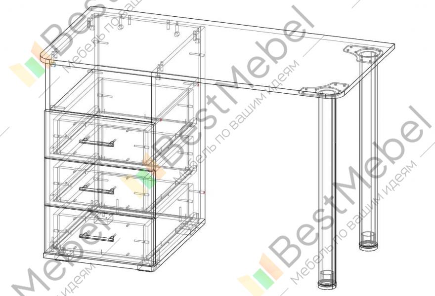 Покупал в комплекте два стола - компьютерный Уилл-Бэст и письменный ПС 40-15. Нюанс в том, что столы эти нужны были жене для рукоделья, и мы ни в одной фирме не могли подобрать нужную конфигурацию – то не подходил цвет, то размер, то конфигурация, то цена. Выбор если где и предлагался, то из крайне ограниченного набора параметров.В BMS мы пришли в офис в Румянцево, без особой надежды –и были очень удивлены и обрадованы,когда на вопрос «а такой же, но с перламутровыми пуговицами» нам, образно говоря, выложили набор этих самых пуговиц на выбор. В результате из двух не очень подходящих столов нам скомпоновали нужный комплекс, изменив всё по нашим запросам: размеры, которых было на сайте – от столешниц до тумб, сделали одинаковую высоту, учли, что один стол будет стоять возле выступающей батареи, заменили скругленные углы на прямые а прямые, наоборот, скруглили там, где надо. Само собой, подобрали цвета. Тут отдельная благодарность сотрудникам за понимание и терпение.Привезли всё вовремя, собирал я сам. Не скажу, что это было так же просто до тупости, как в ИКЕЕ, немножко пришлось включить голову, но в принципе все собрал без особых проблем и, главное, без «доработки напильником». Понравилось, что на каждой детали была наклейка с номерком по схеме и описанием, что она из себя представляет. В икейной-то мебели приходится осторожничать, чтобы различить похожие внешне детали. Если бы еще как-то сделать так, чтобы наклейки отдирались полегче и без следов или хотя бы клеились не на лицевую сторону, вообще было бы замечательно. Ну, и схему хотелось бы покрупнее и подетальнее.Обобщая – на меня самое большое впечатление произвела возможность любой заказ точно подогнать под свои пожелания и размеры. А самое главное – жена довольна. А что еще нужно?Сейчас согласовываю следующий заказ, с раскладным столом. Тоже с таким, точно какого на сайте нет. Надеюсь, не подведут.