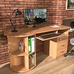 Письменный стол ПС 4002 M1 BMS оборудован радиусным стеллажом с одной стороны и тумбой, верхний ящик которой закрывается на ключ, - с другой. Эргономично вырезанная столешница без острых углов дополнена выкатной полочкой для удобного размещения клавиатуры. Модель современного дизайна органично впишется в офисный и домашний интерьер и сделает рабочий процесс комфортным. Купить письменный стол ПС 4002 M1 BMS приглашаем на сайт нашего интернет-магазина с выбором размеров и цвета по каталогу.