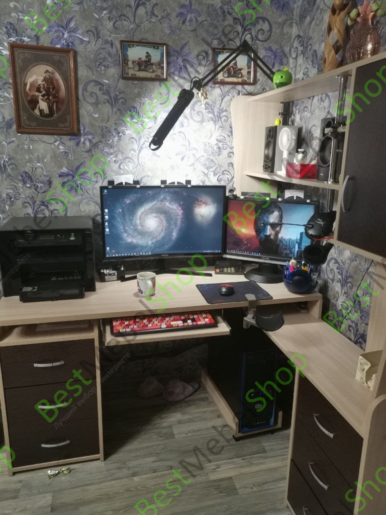 Очень хороший и удобный стол. Специально заказывала с удлиненной столешницей для двух мониторов. Теперь работаю и не нарадуюсь. Две тумбочки, вместительные и удобно расположенные. Надстройка функциональная и создает ощущение легкости - нет видимости громоздкости. Рекомендую однозначно.