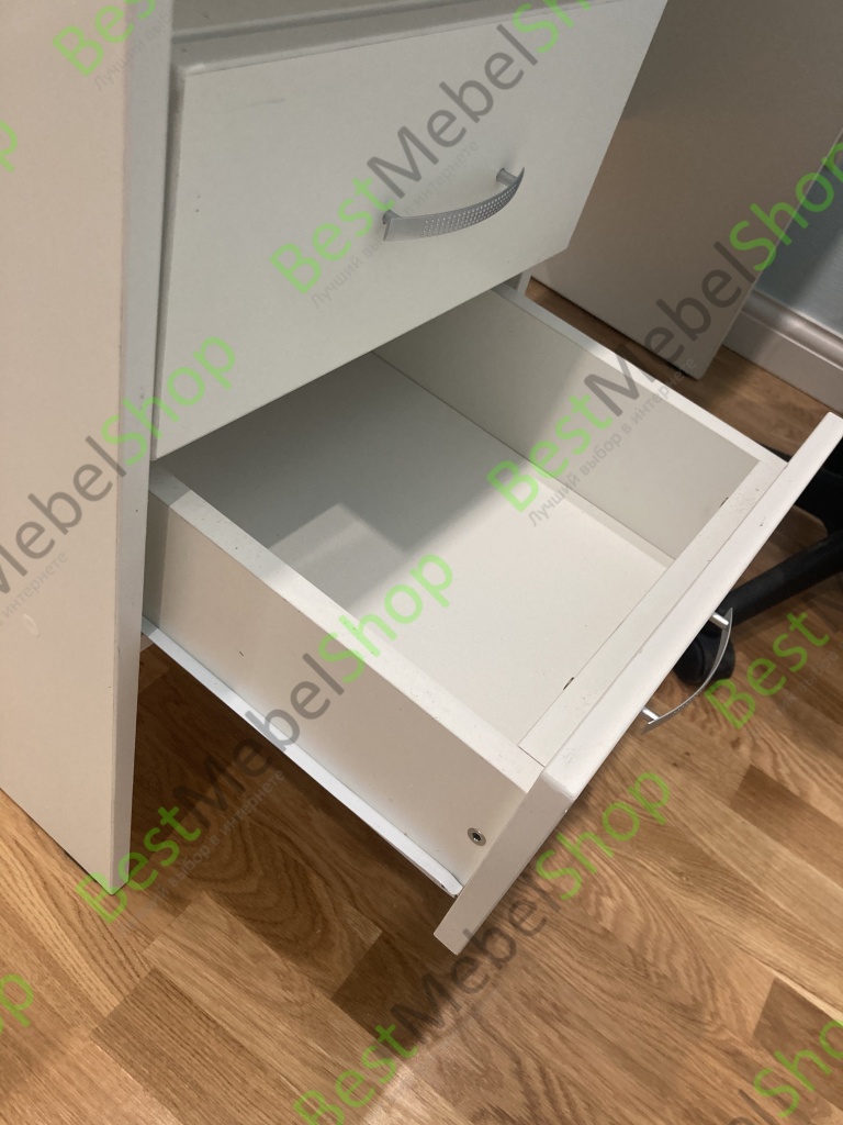 Стол очень удобный для работы. Много места, все помещается. Ручки на тумбочку не прикручивали, но они в наличии. Покупкой очень довольна