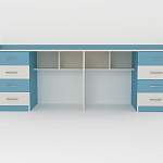 Стол для двоих детей Город 28 BMS поможет обустроить полноценную рабочую зону в интерьере молодежной комнаты. Современная модель в сочетании нейтрального белого и спокойных цветных вставок создаст в помещении комфортную атмосферу. Стол представляет собой сочетание просторной столешницы с ограничительными бортиками, которые уберегут мелкие предметы от падения, двух тумб с выдвижными ящиками, незаменимых для хранения канцелярских принадлежностей, и открытых полок. Купить стол для двоих детей Город 28 BMS вы сможете в нашем интернет-магазине.